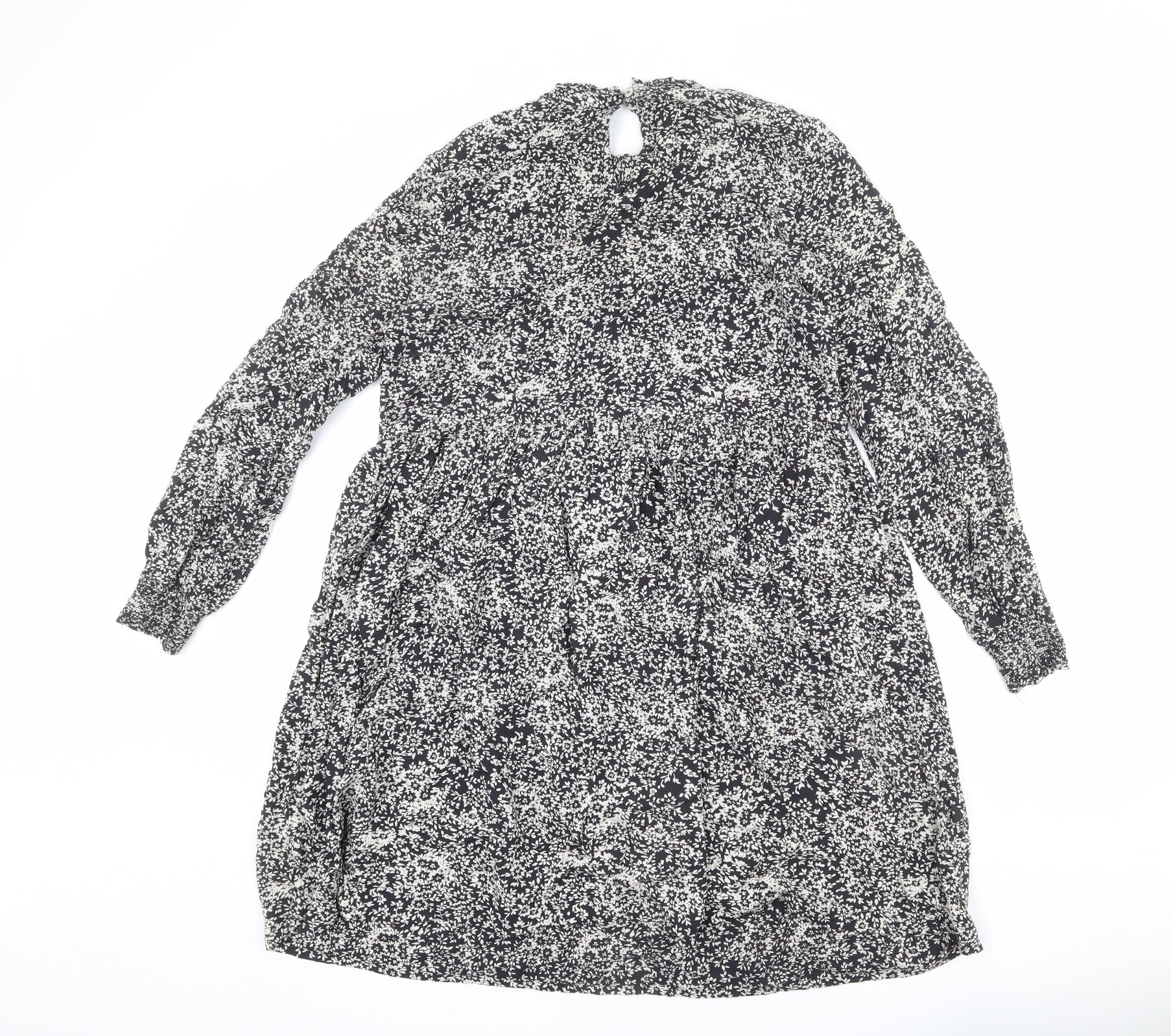 Monsoon Womens Black Floral Viscose Trapeze & Swing Size S Mock Neck Button