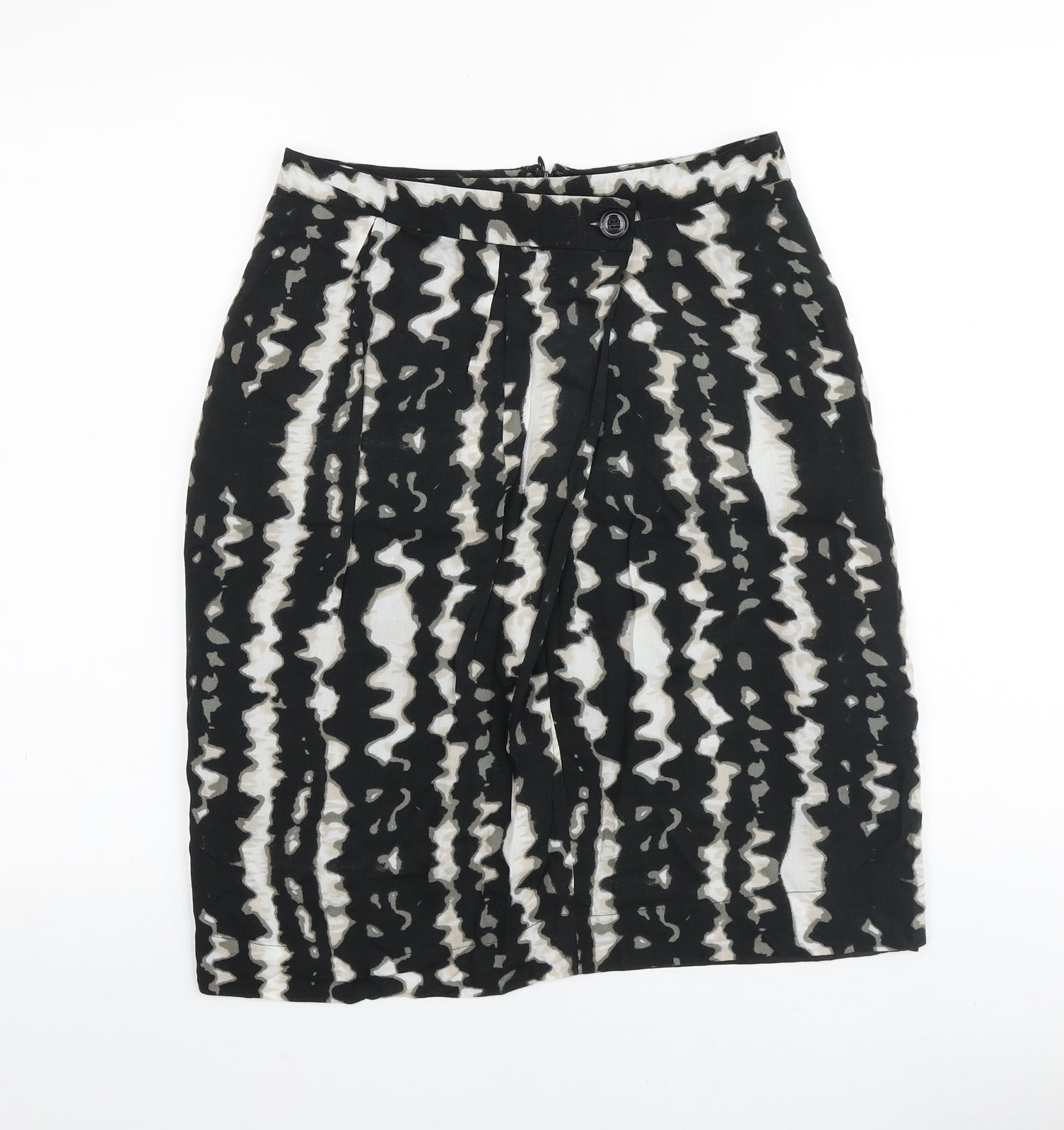 Monsoon Womens Black Geometric Cotton Wrap Skirt Size 8 Zip