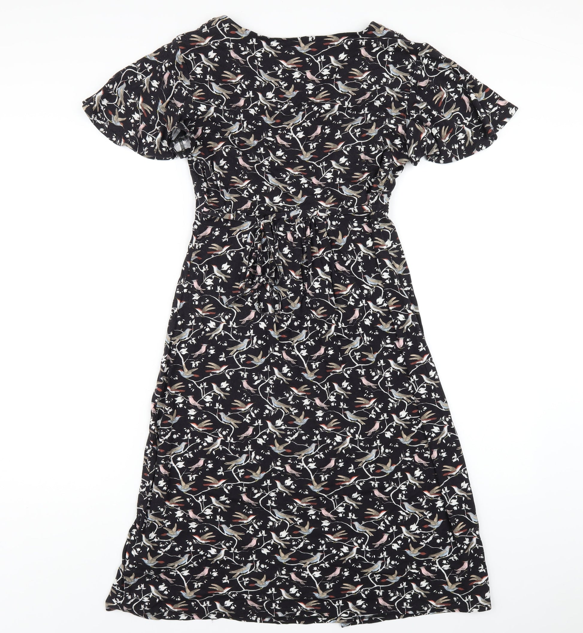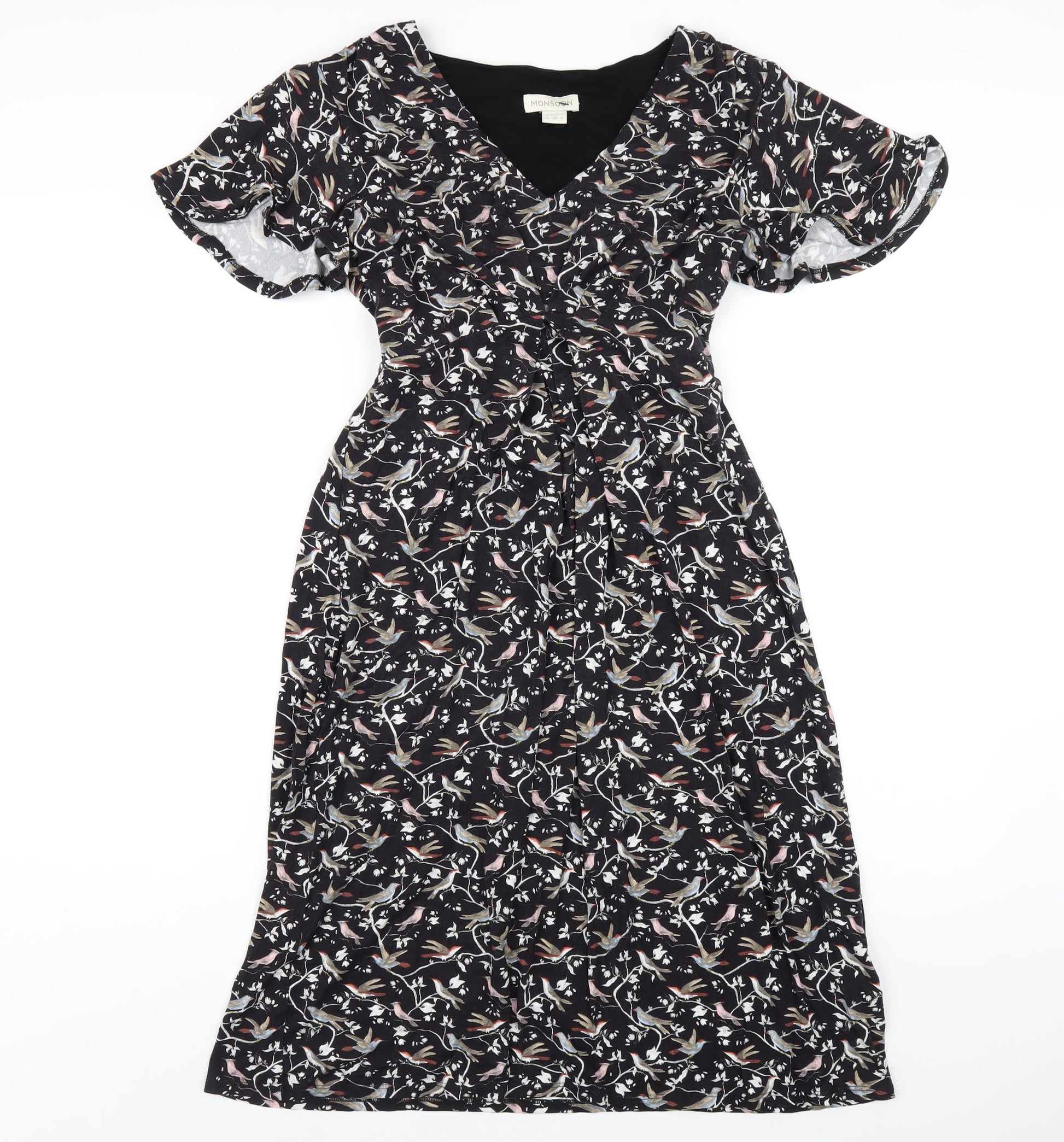 Monsoon Womens Black Geometric Viscose A-Line Size 10 V-Neck Pullover