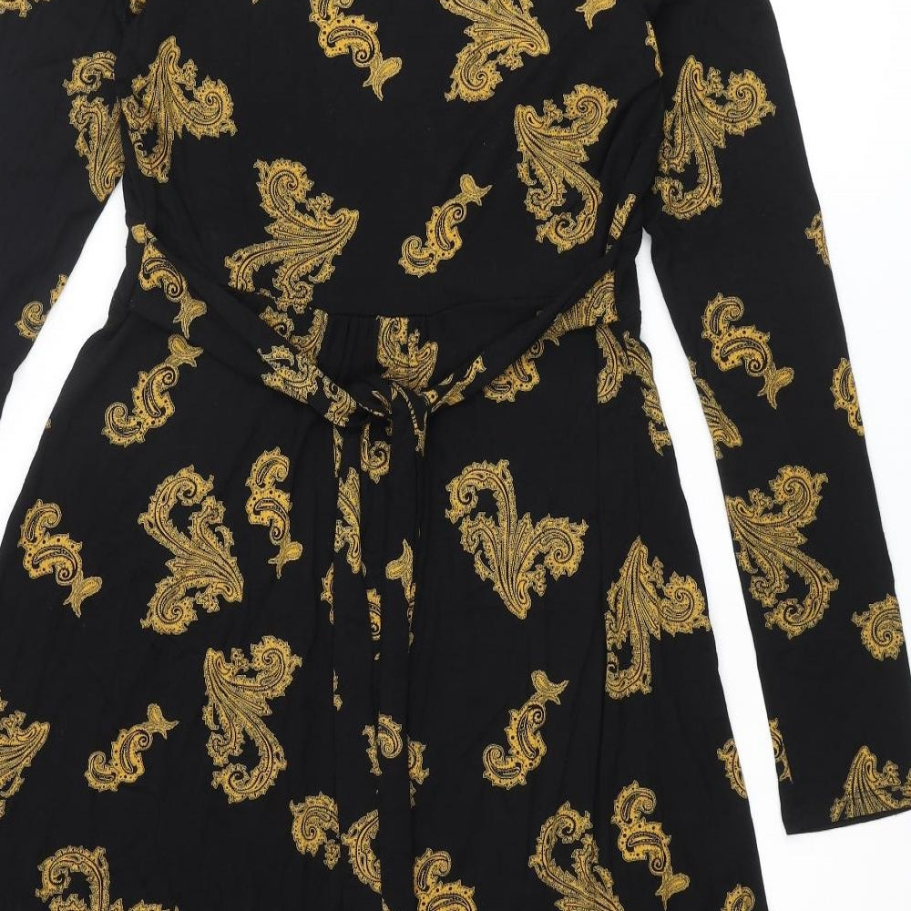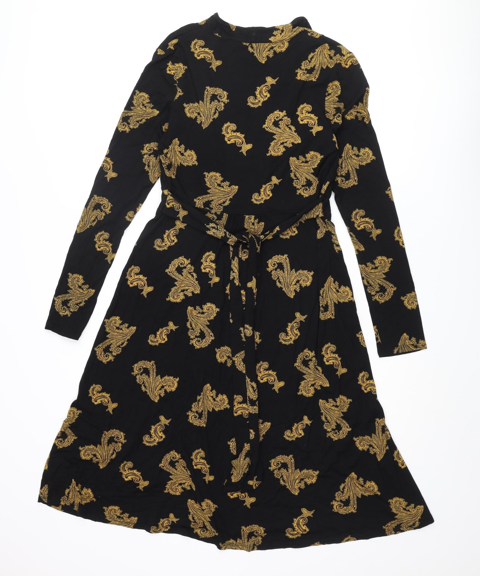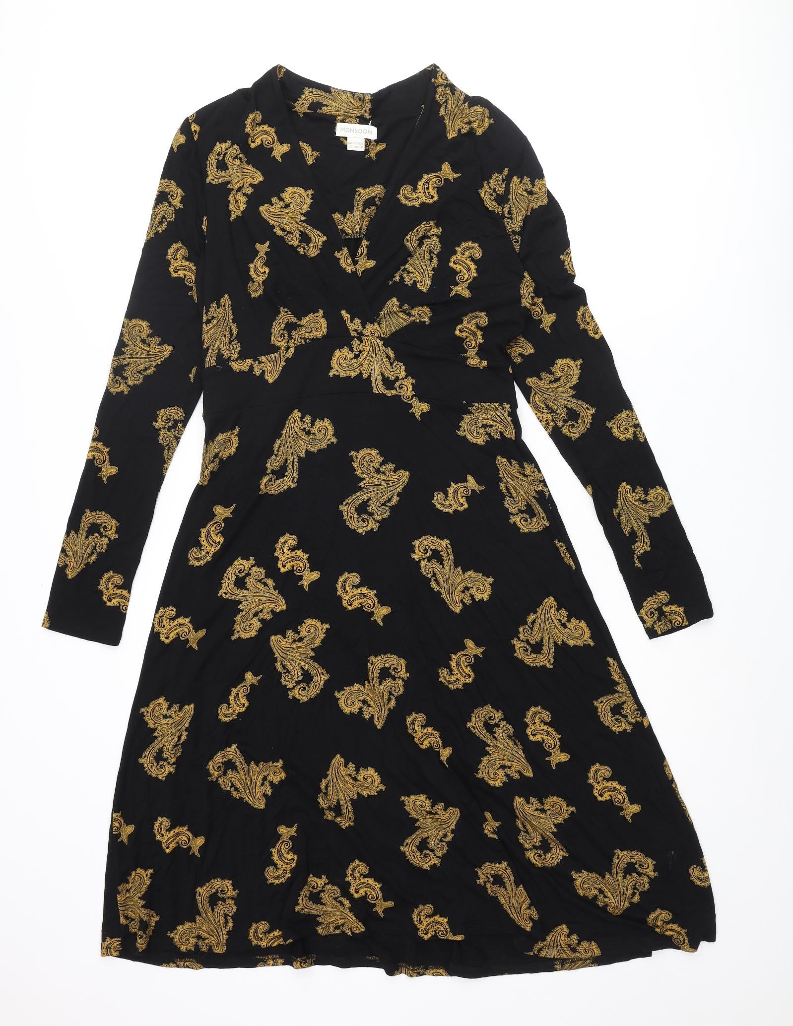 Monsoon Womens Black Geometric Viscose A-Line Size 12 V-Neck Pullover
