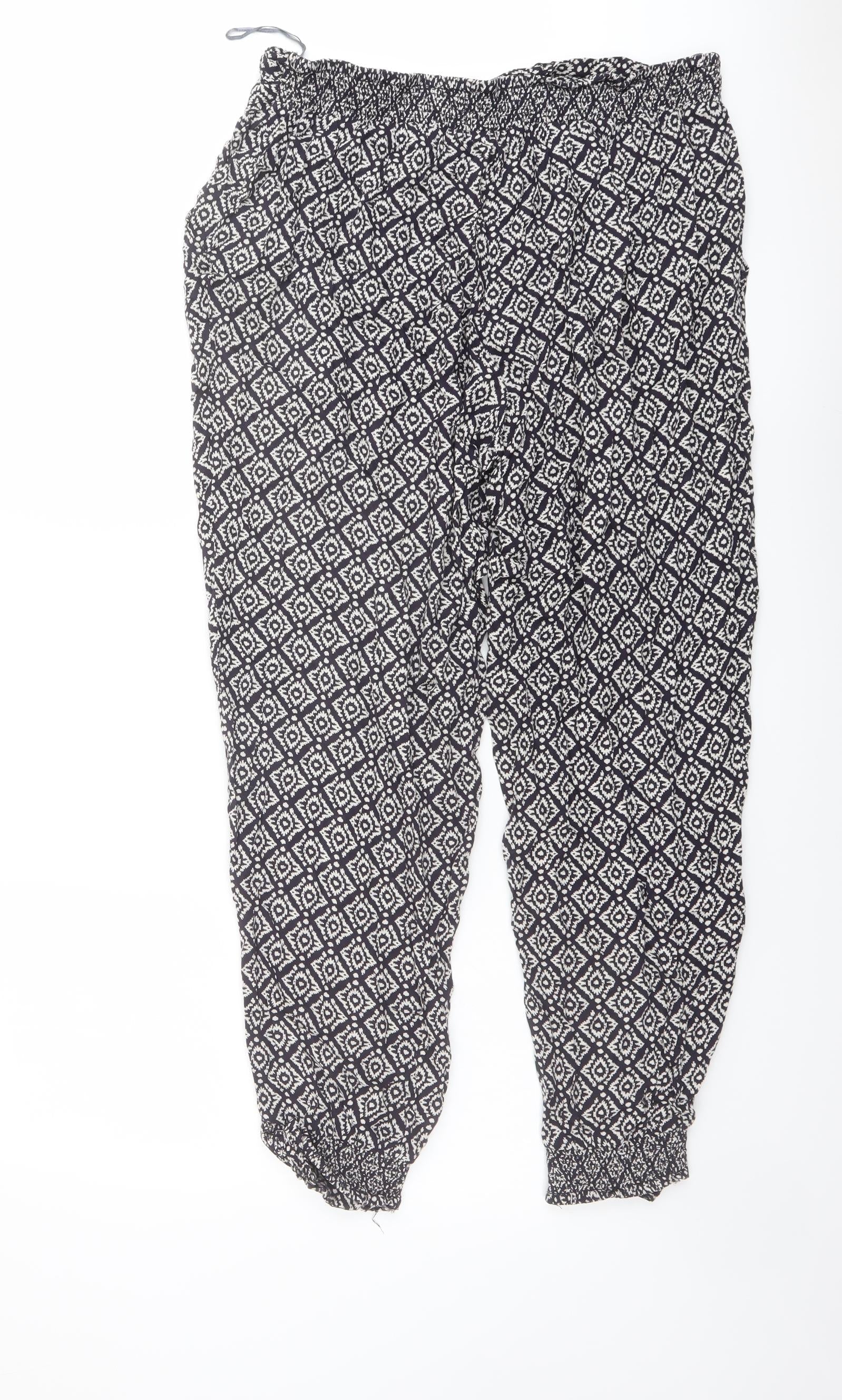 Monsoon Womens Black Geometric Viscose Harem Trousers Size 32 in L27 in Regular
