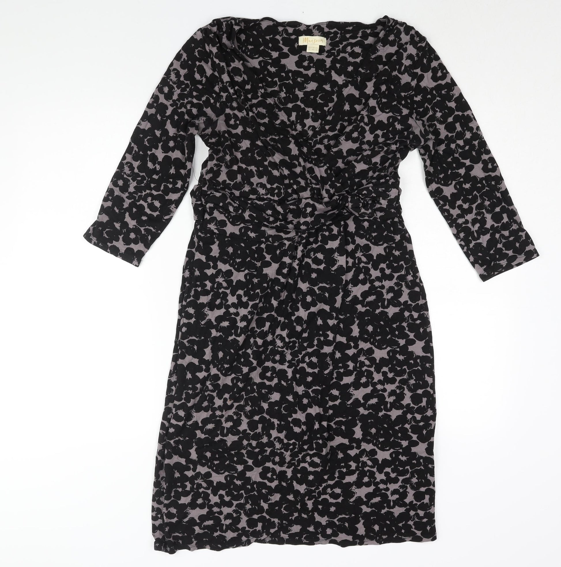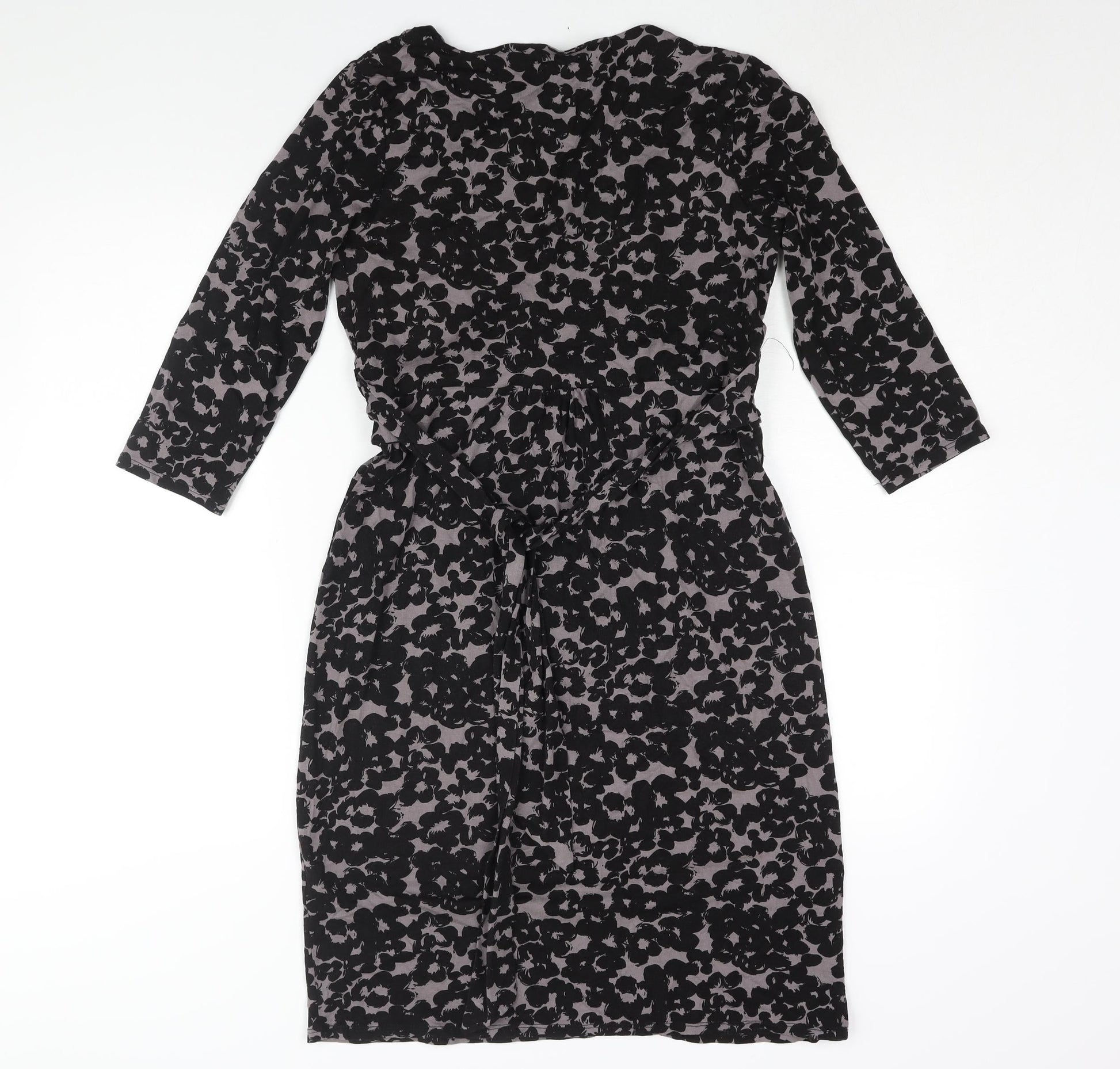 Monsoon Womens Black Geometric Viscose Shift Size 12 V-Neck Pullover - Belted