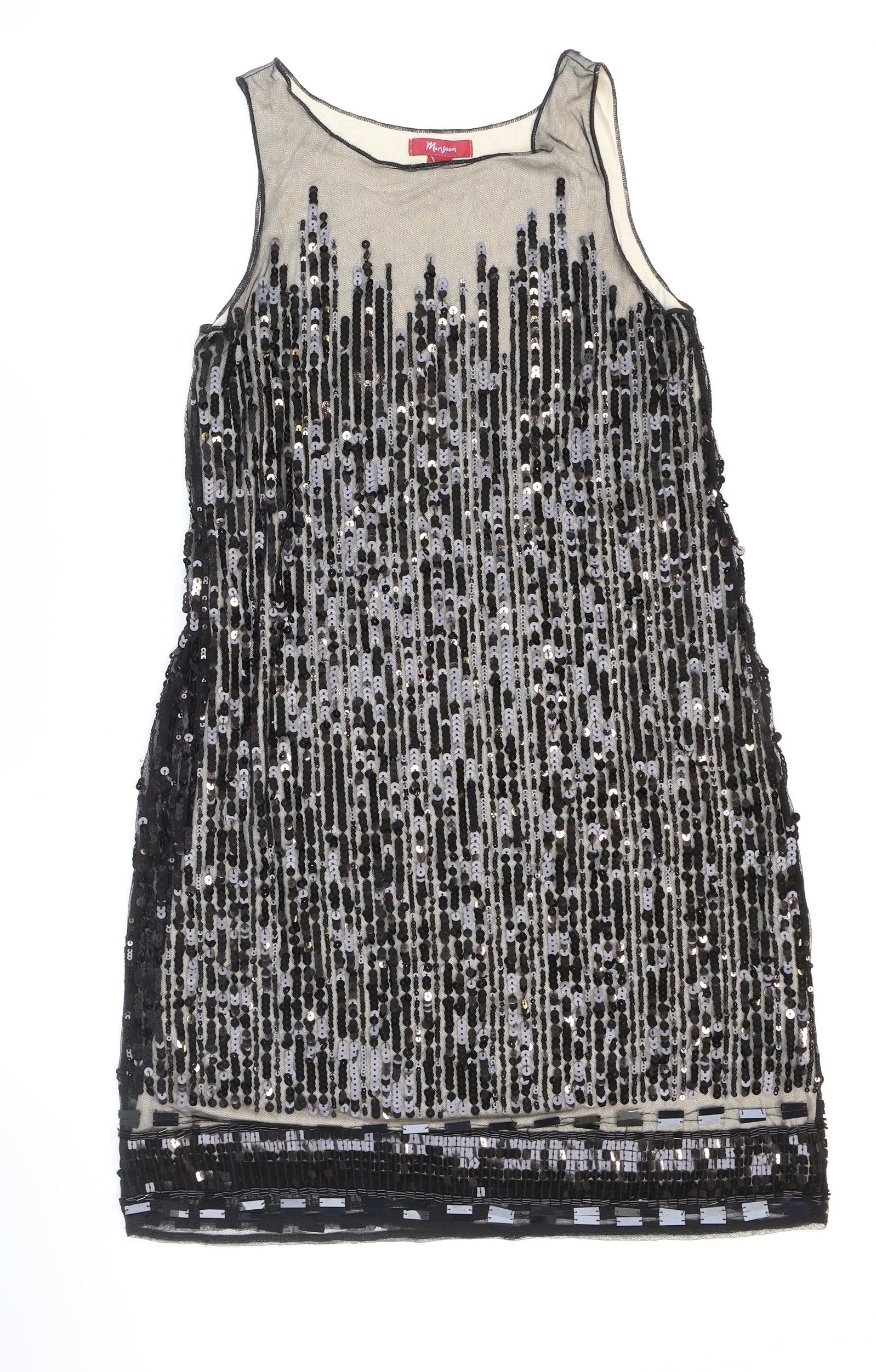Monsoon Womens Black Nylon Sheath Size 10 Round Neck Pullover