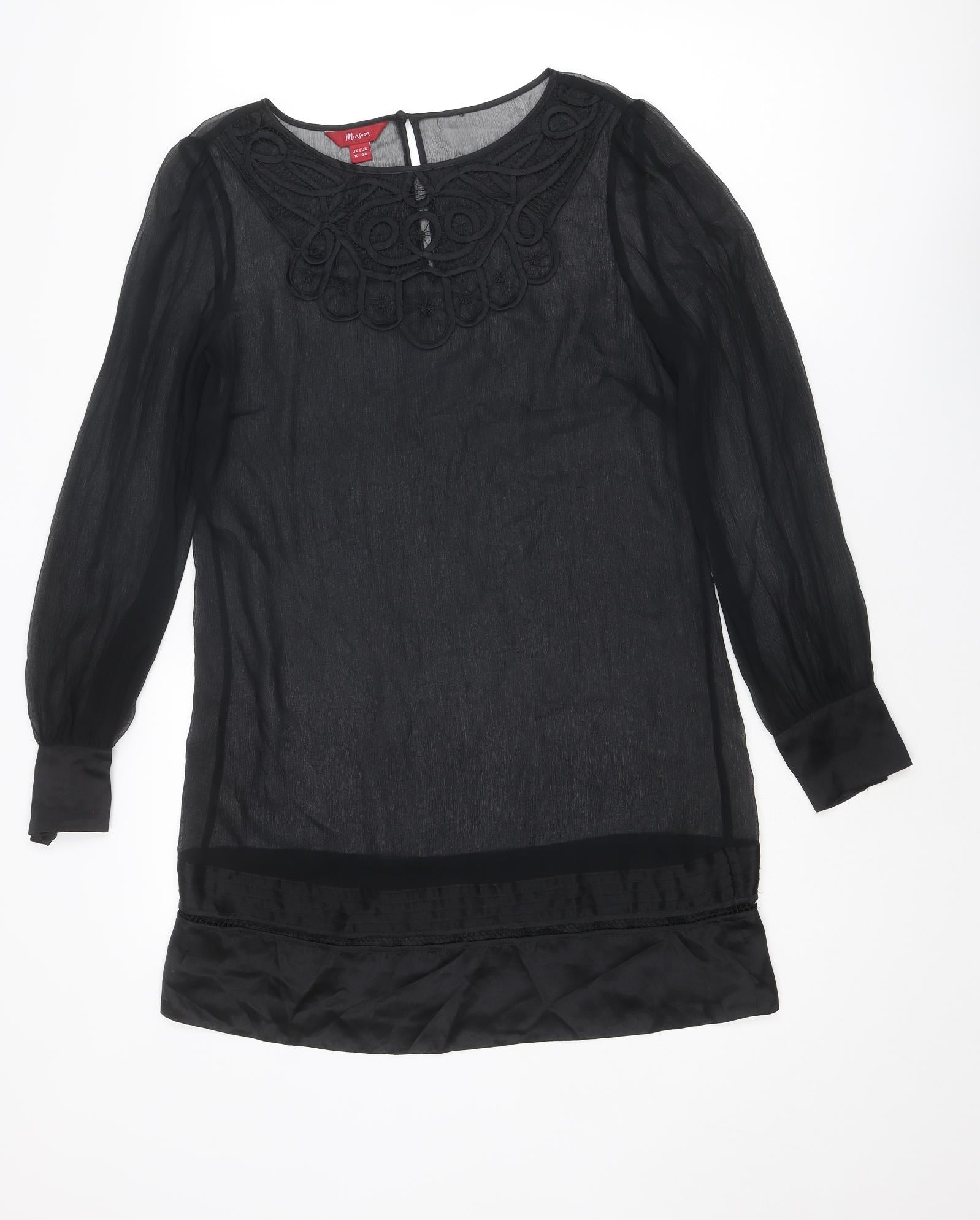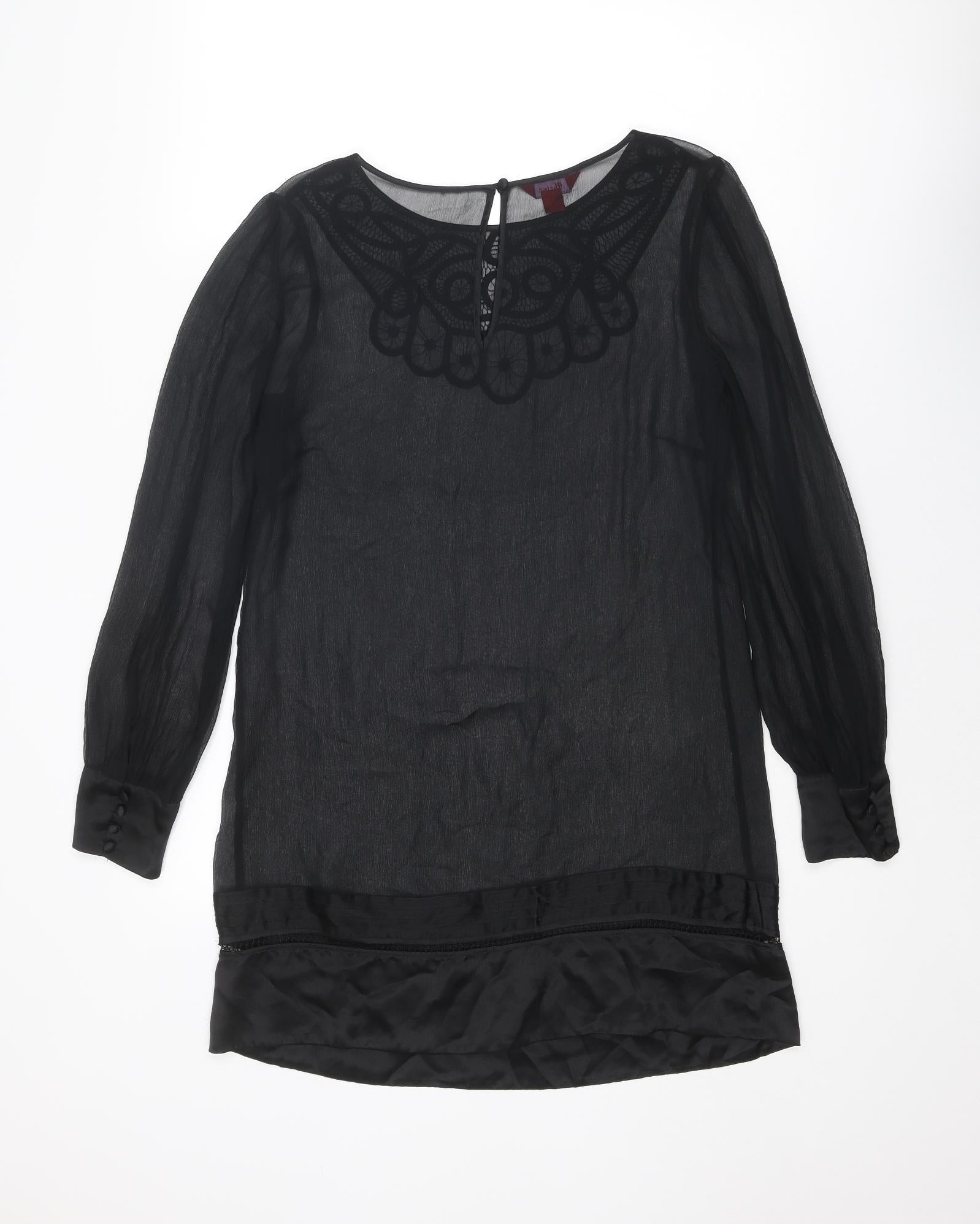 Monsoon Womens Black Polyester Shift Size 10 Boat Neck Button