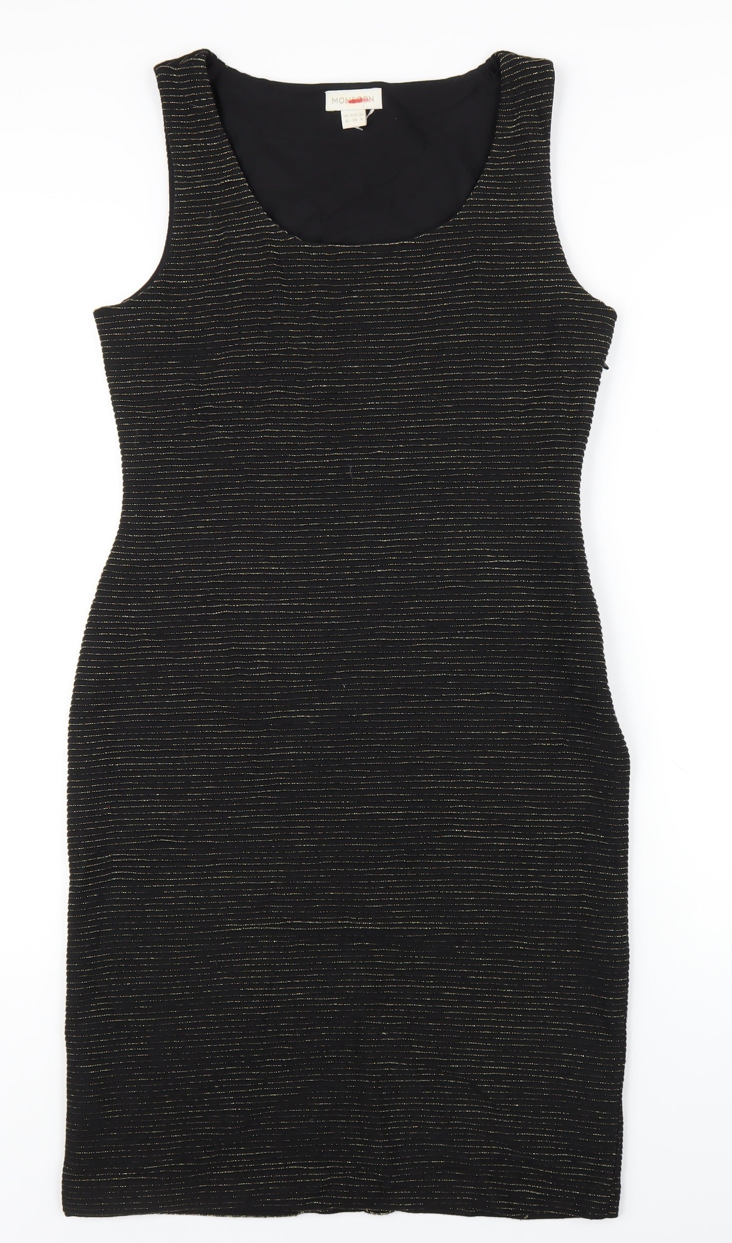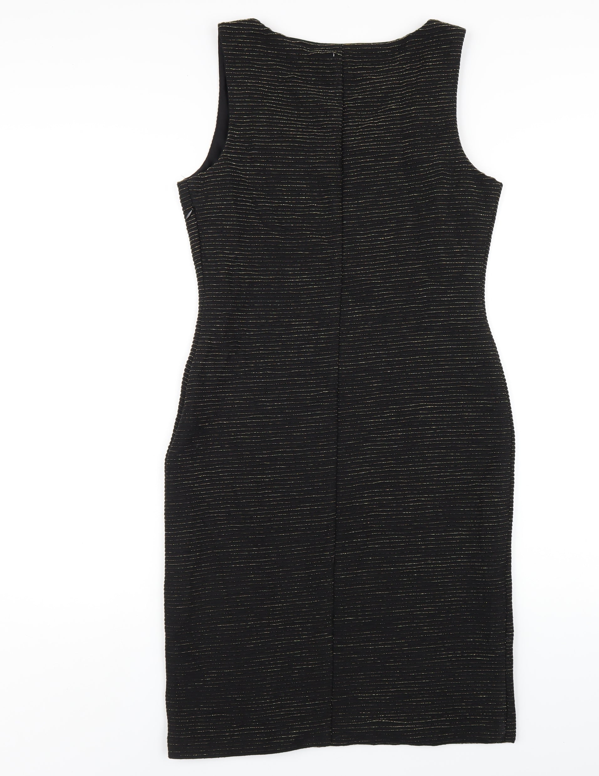 Monsoon Womens Black Striped Polyester Bodycon Size 10 Scoop Neck Zip
