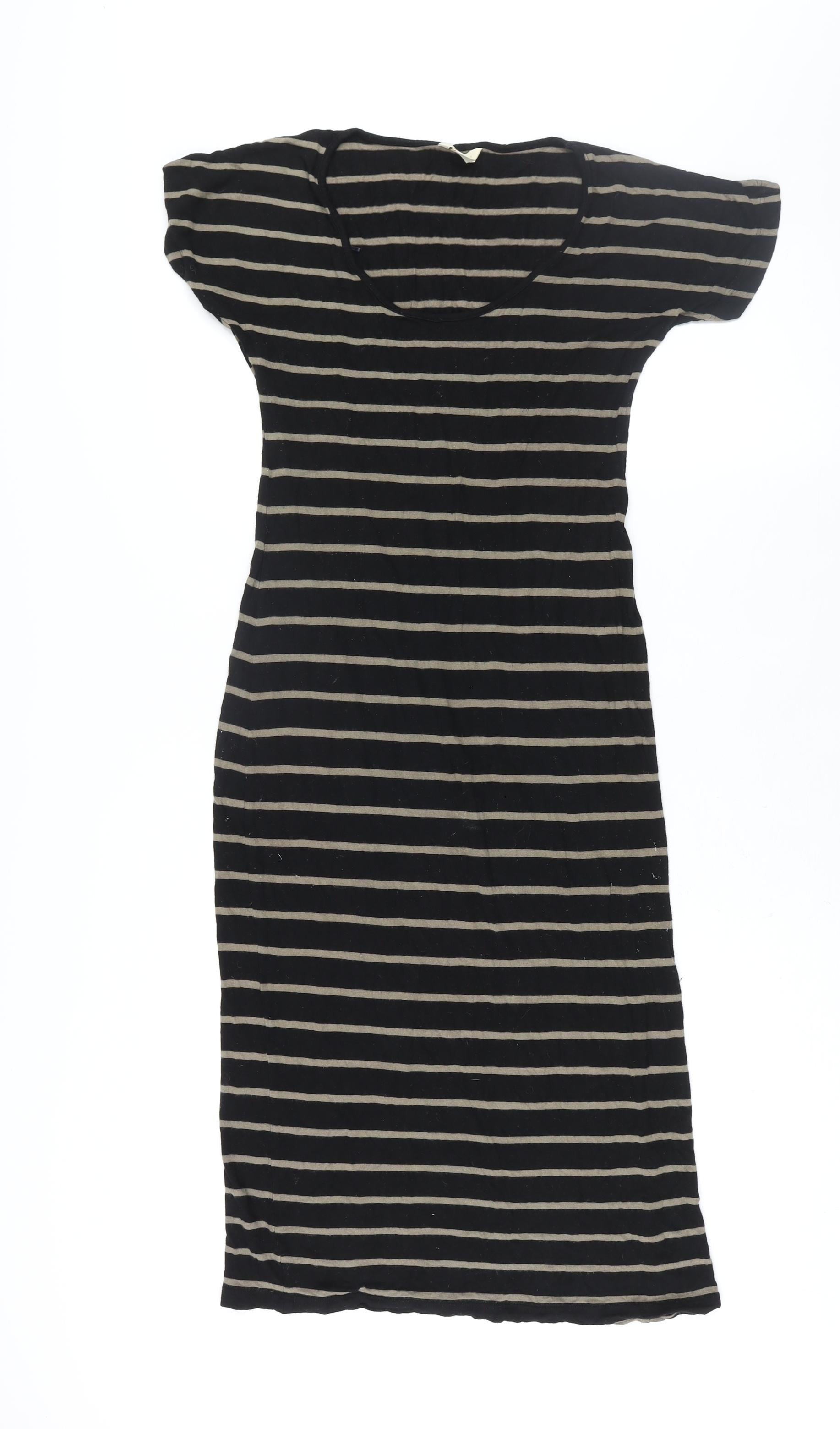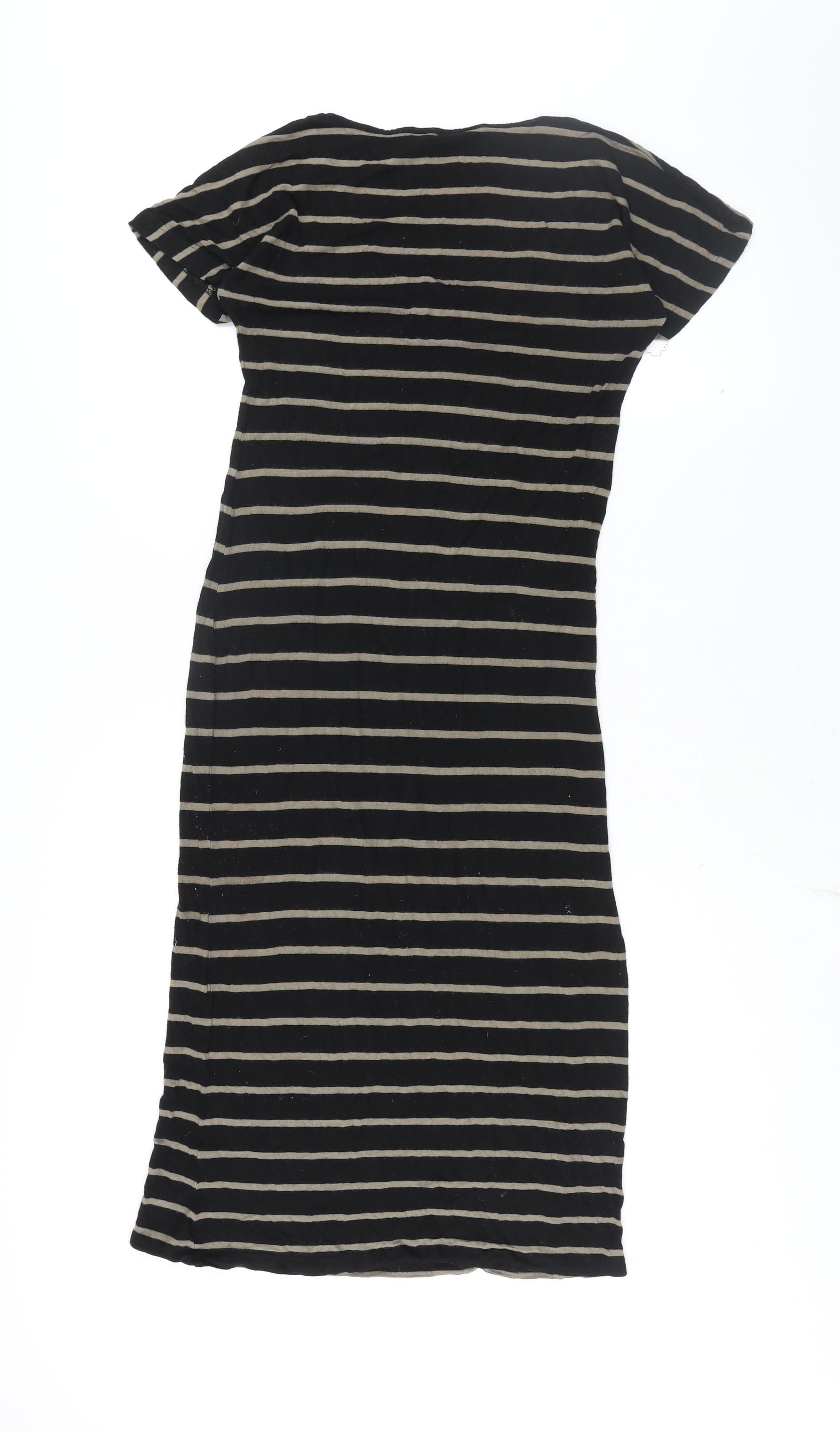 Monsoon Womens Black Striped Viscose Shift Size 10 Round Neck Pullover