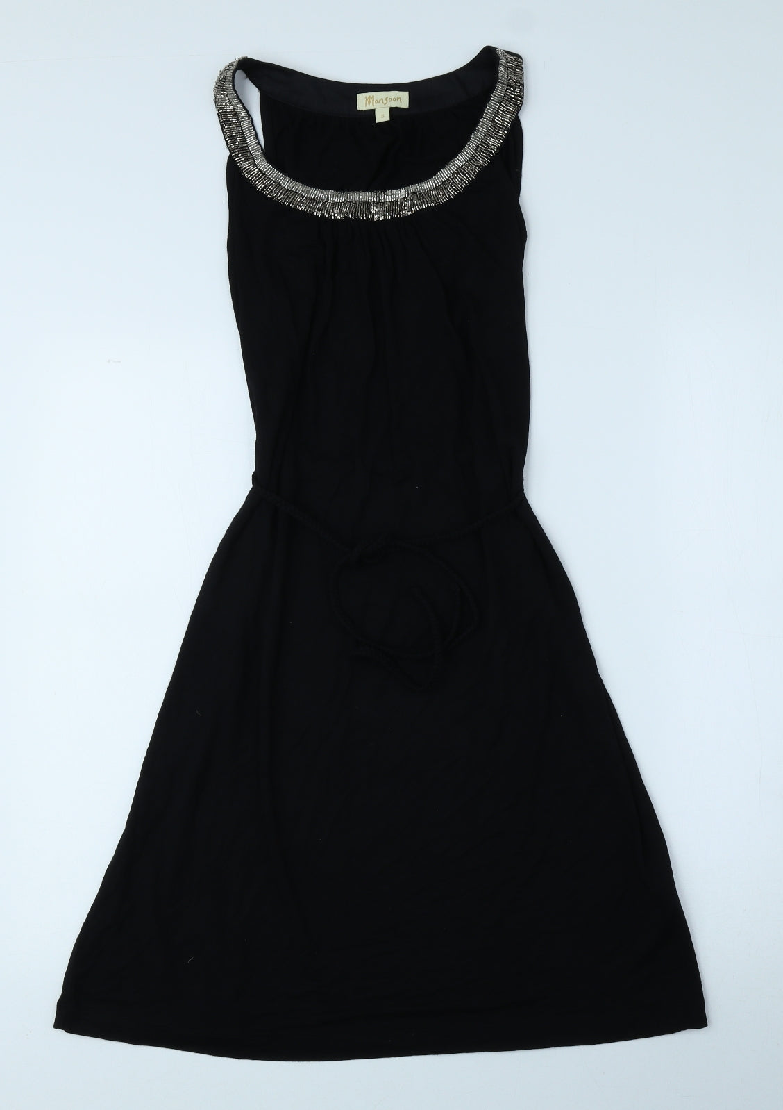 Monsoon Womens Black Viscose A-Line Size S Crew Neck Pullover