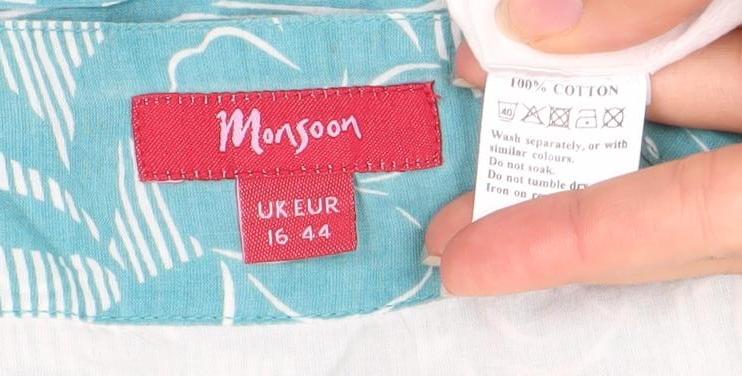 Monsoon Women's Blue Floral A-Line Dress, Size 16, Cotton