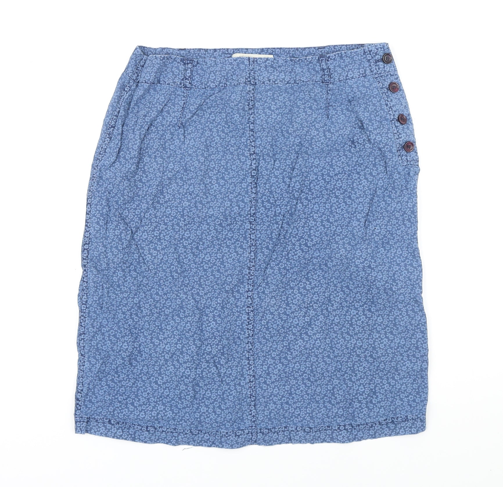 Monsoon Womens Blue Floral Cotton Blend A-Line Skirt Size 12 Button