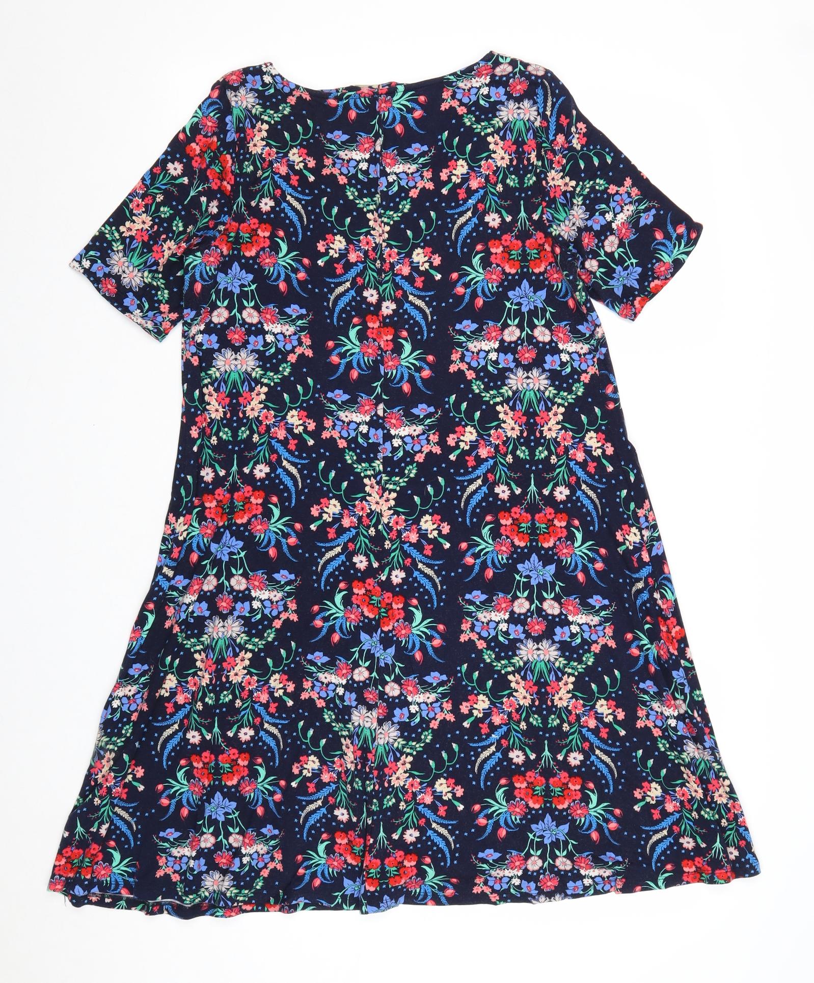 Monsoon Womens Blue Floral Viscose A-Line Size 10 Round Neck Pullover