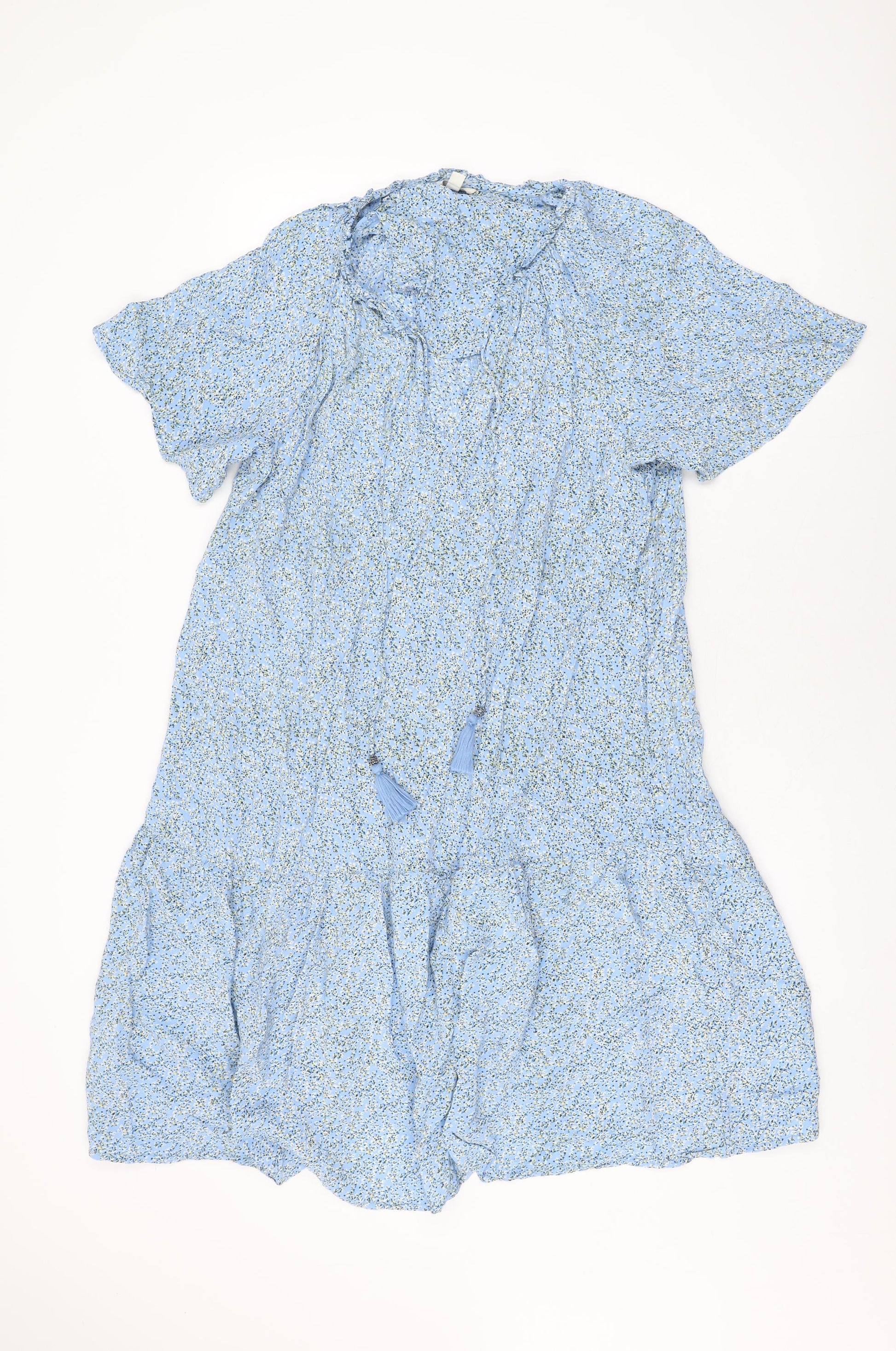 Monsoon Womens Blue Floral Viscose Shift Size L V-Neck Pullover