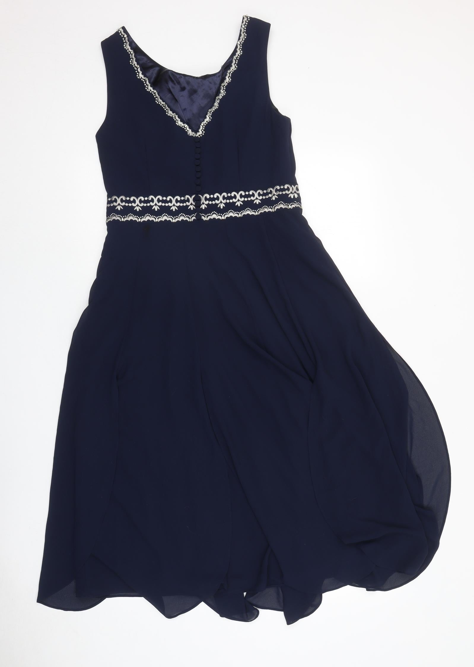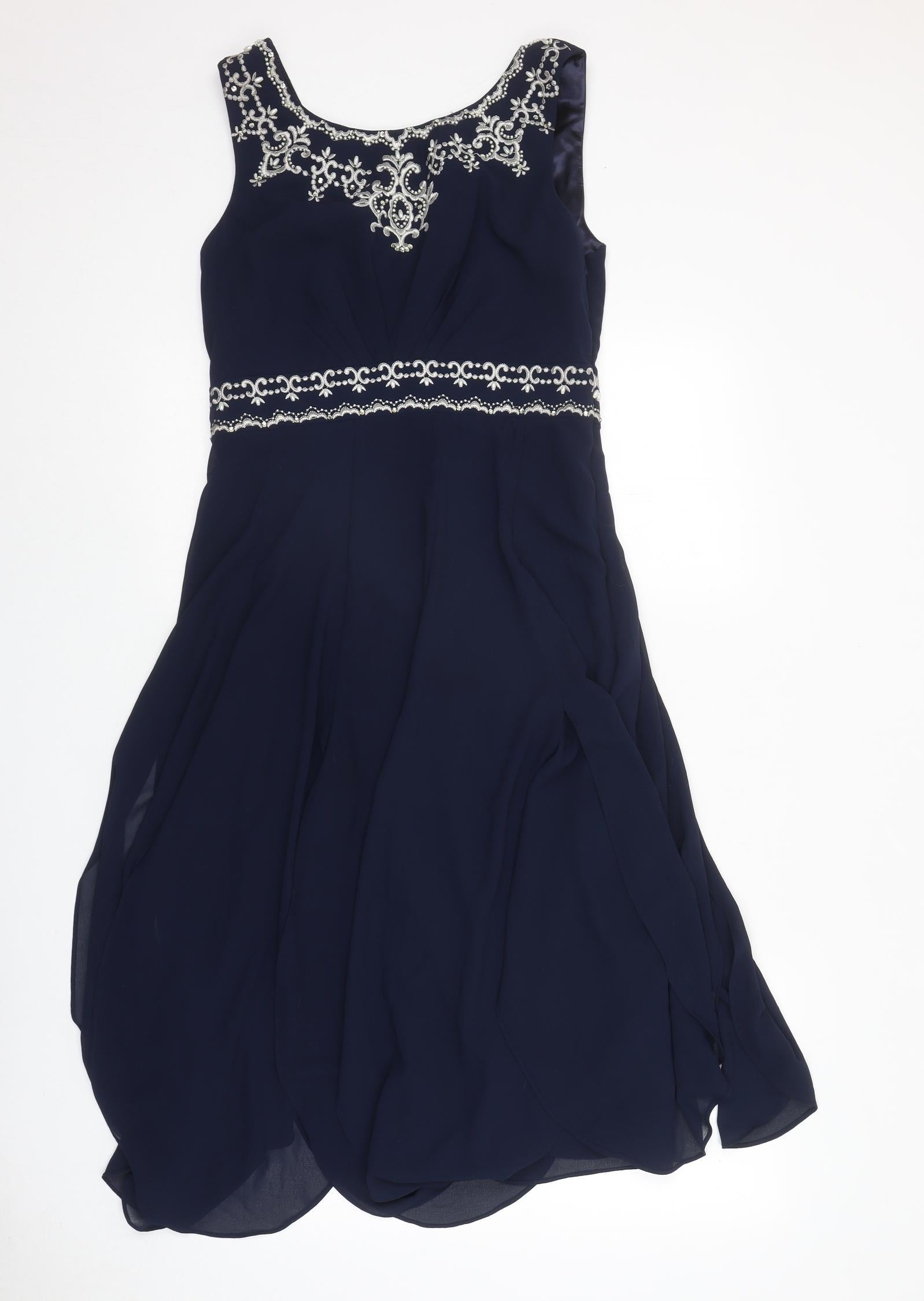 Monsoon Womens Blue Geometric Polyester Ball Gown Size 10 Round Neck Zip