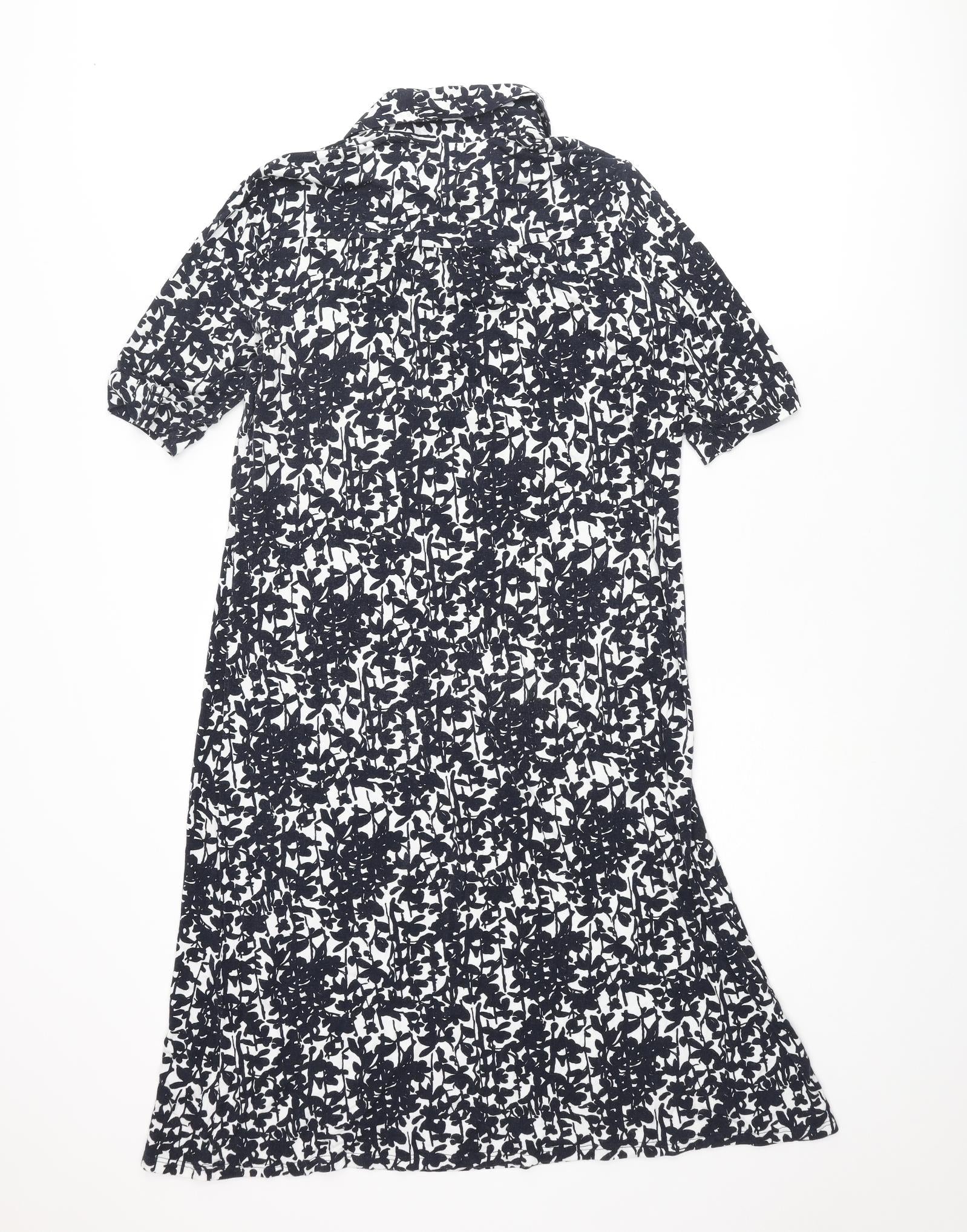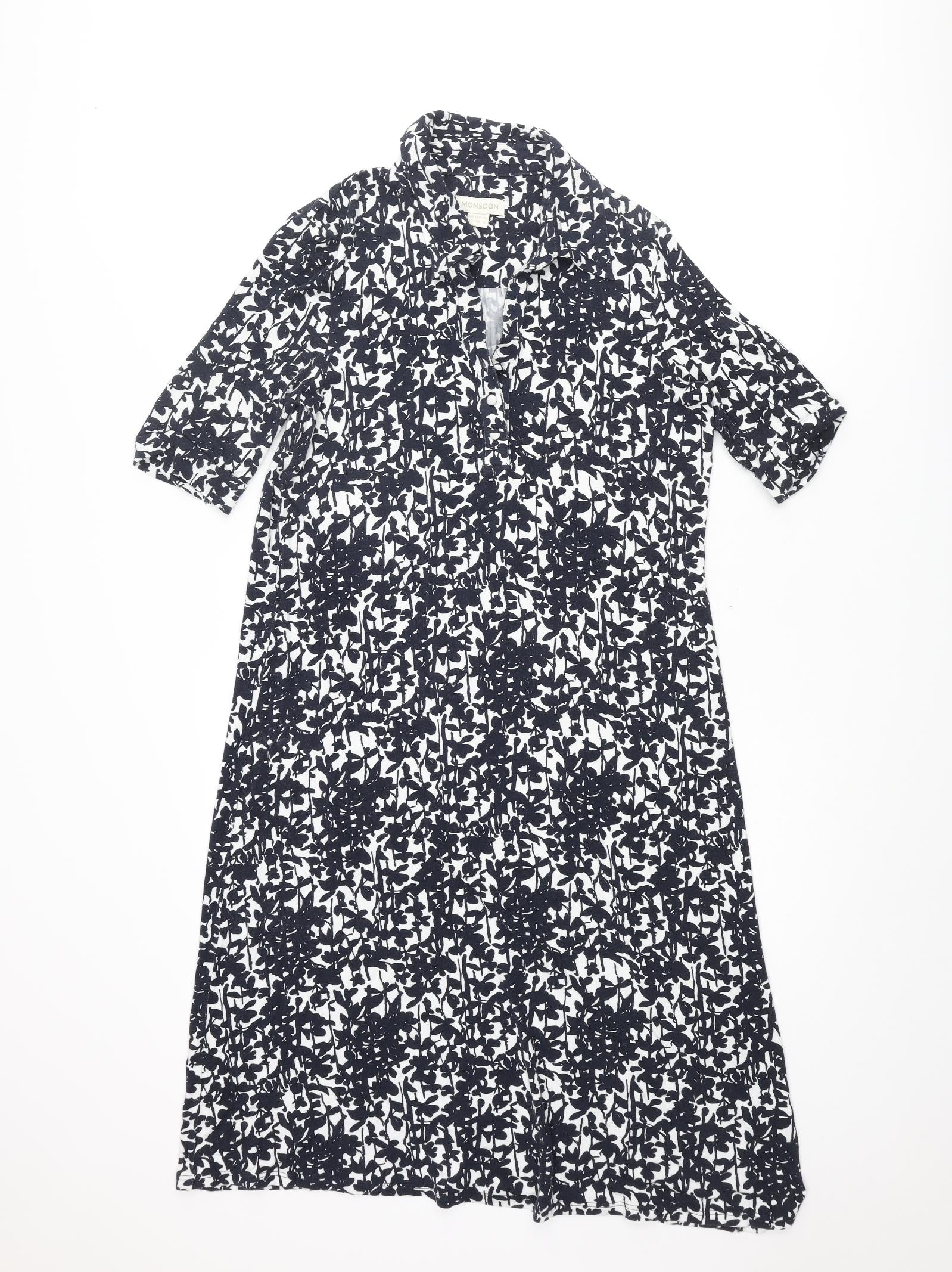 Monsoon Womens Blue Geometric Viscose A-Line Size 10 Collared Pullover