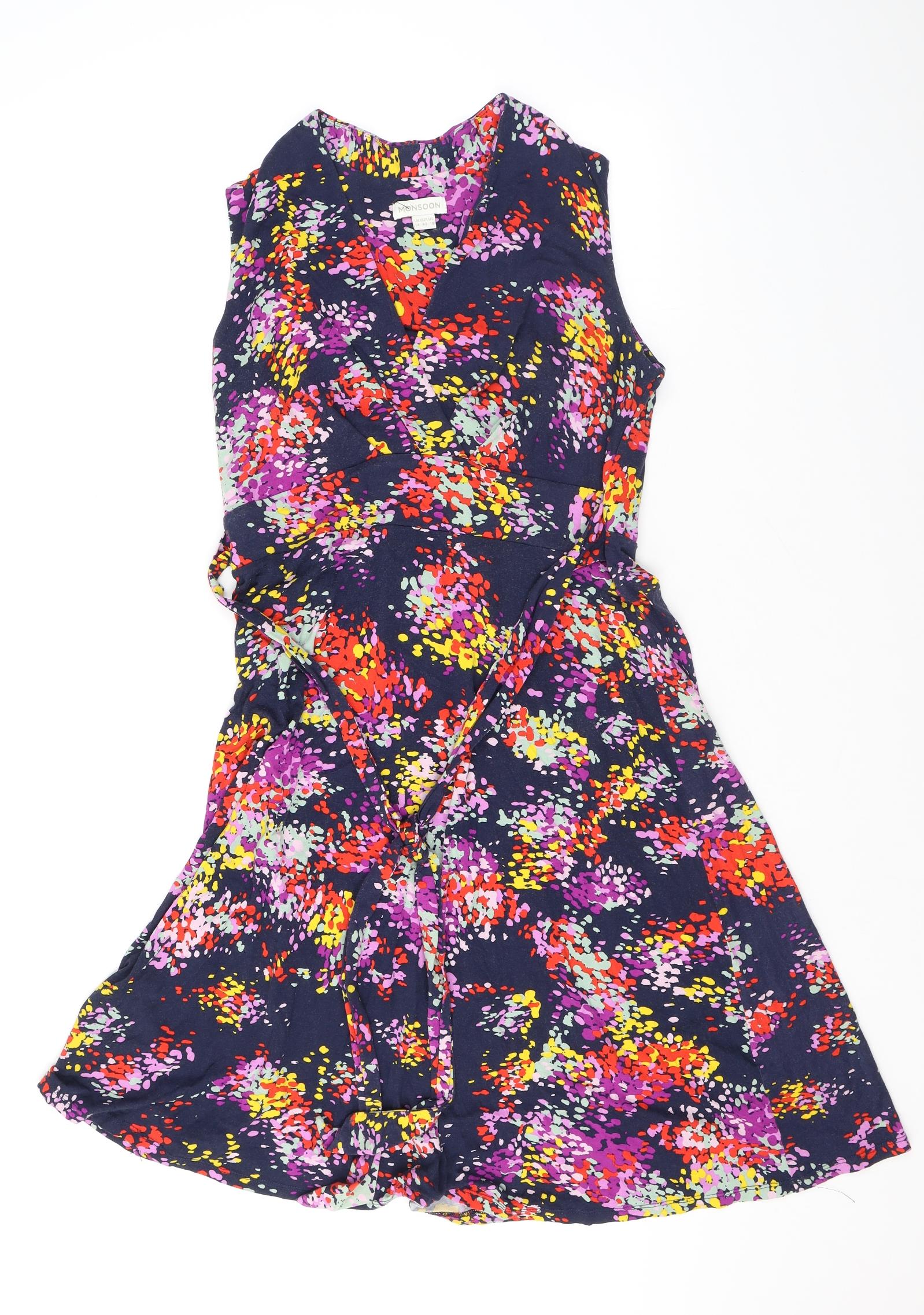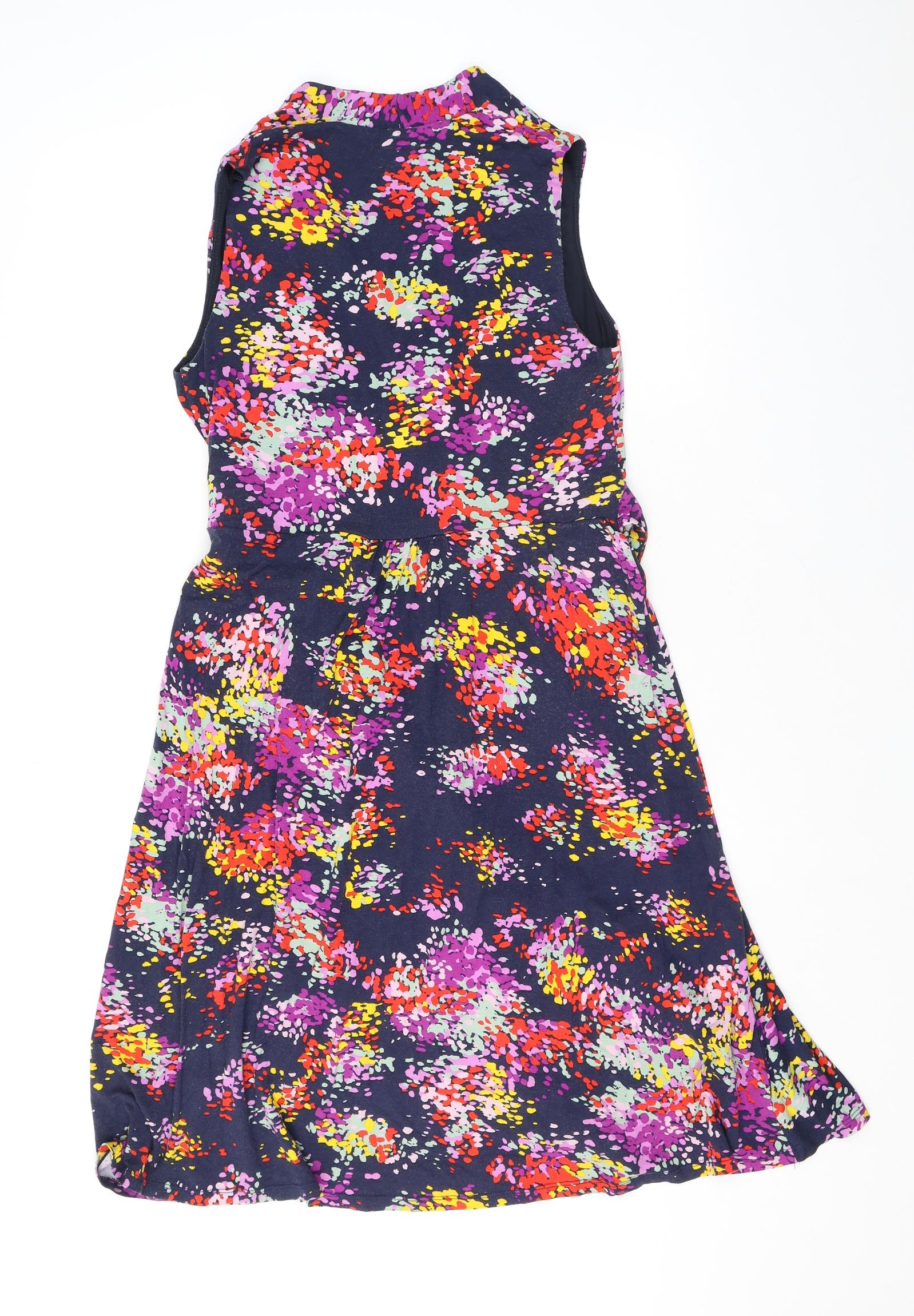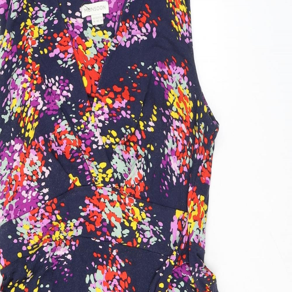 Monsoon Womens Blue Geometric Viscose A-Line Size 14 V-Neck Pullover