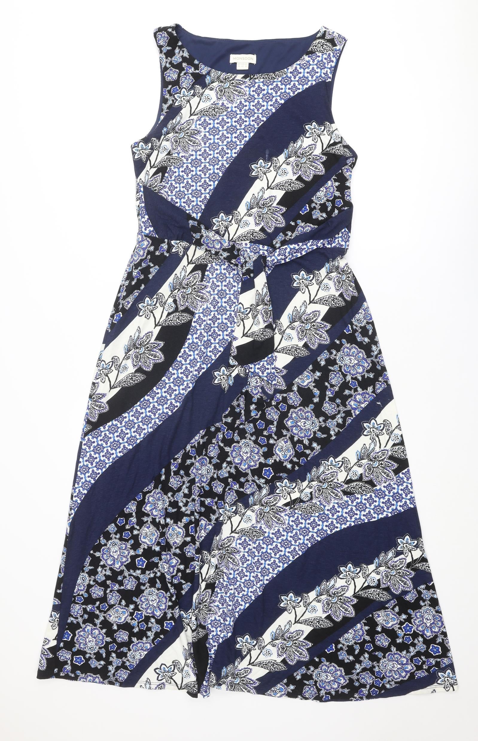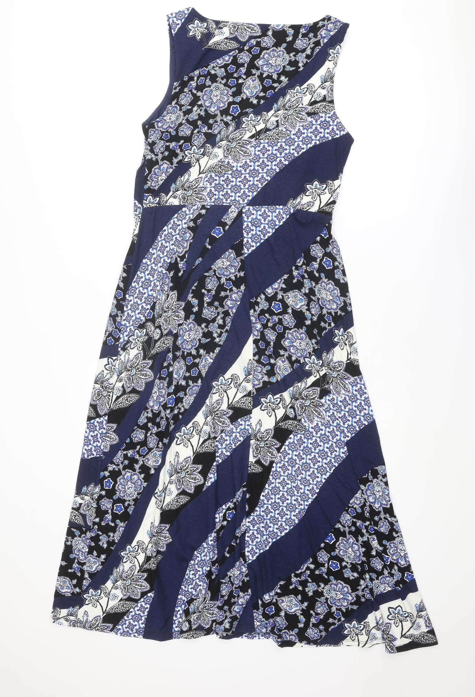 Monsoon Womens Blue Geometric Viscose Maxi Size 14 Round Neck Pullover