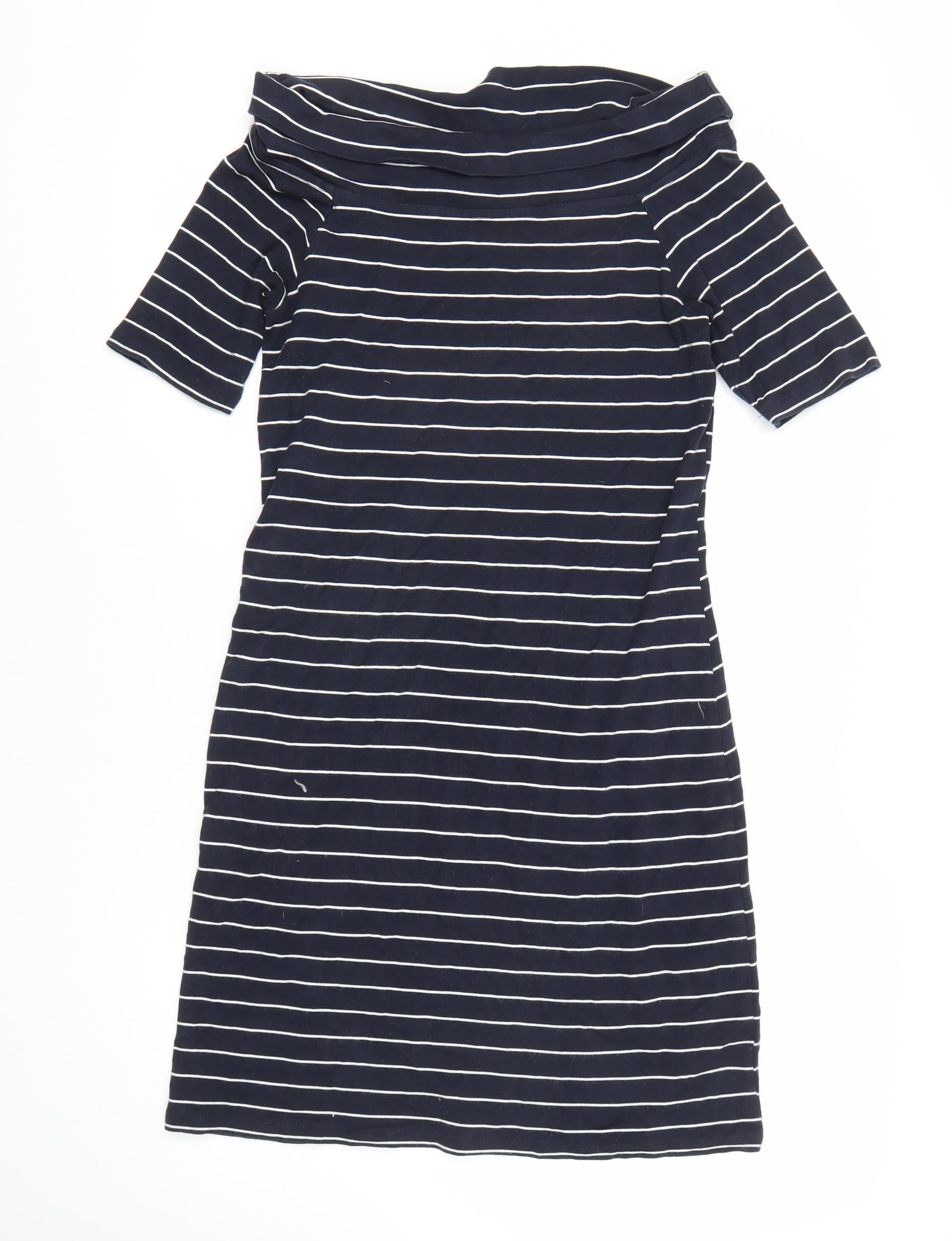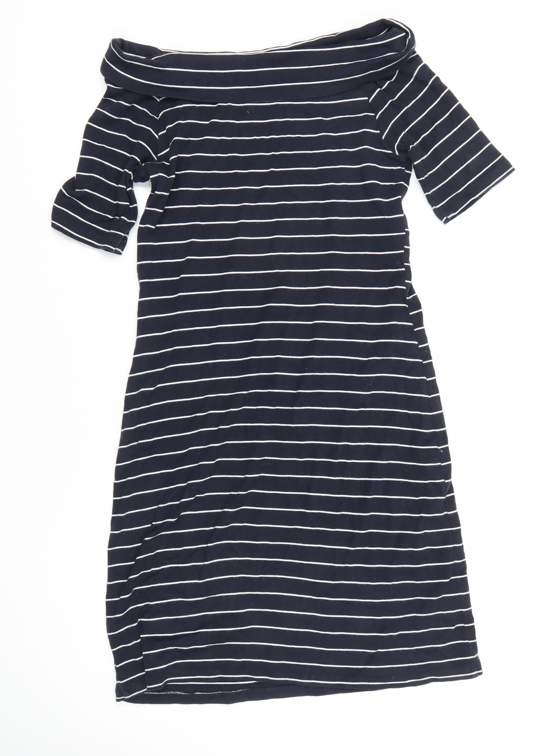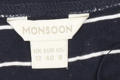 Monsoon Women's Blue Half Sleeve Striped Dress
