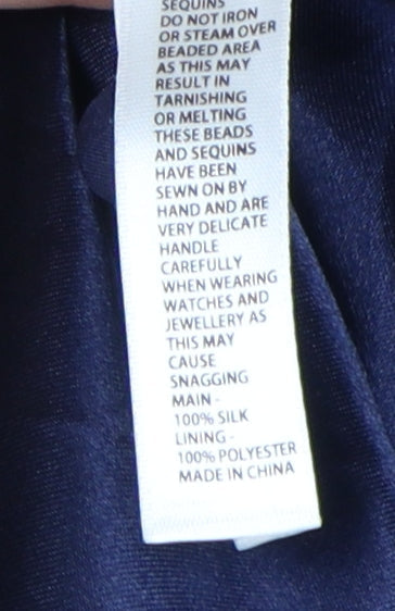 Monsoon Women's Blue Silk A-Line Midi Dress 12