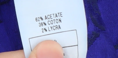 - Material Breakdown: 62% Acetate 36% Cotton 2% Lycra