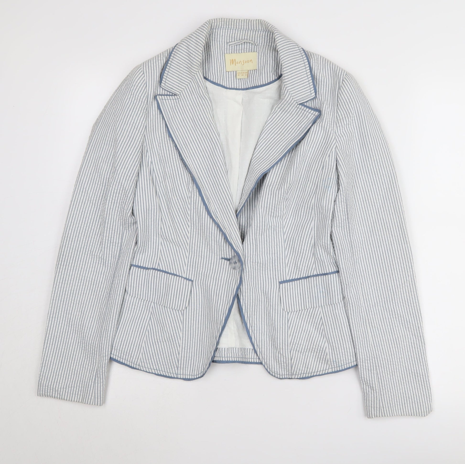 Monsoon Women's Blue Striped Blazer Jacket 10