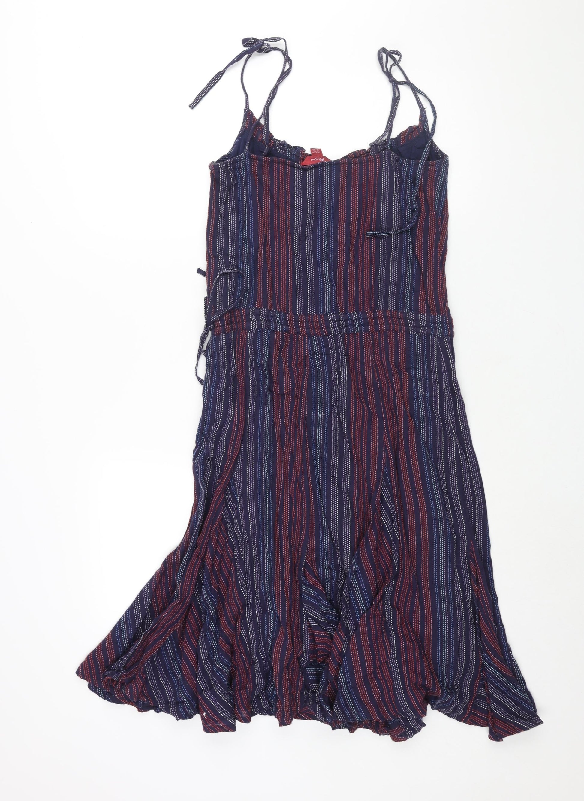 Monsoon Womens Blue Striped Cotton Shift Size 10 V-Neck Zip - Drawstring Tie