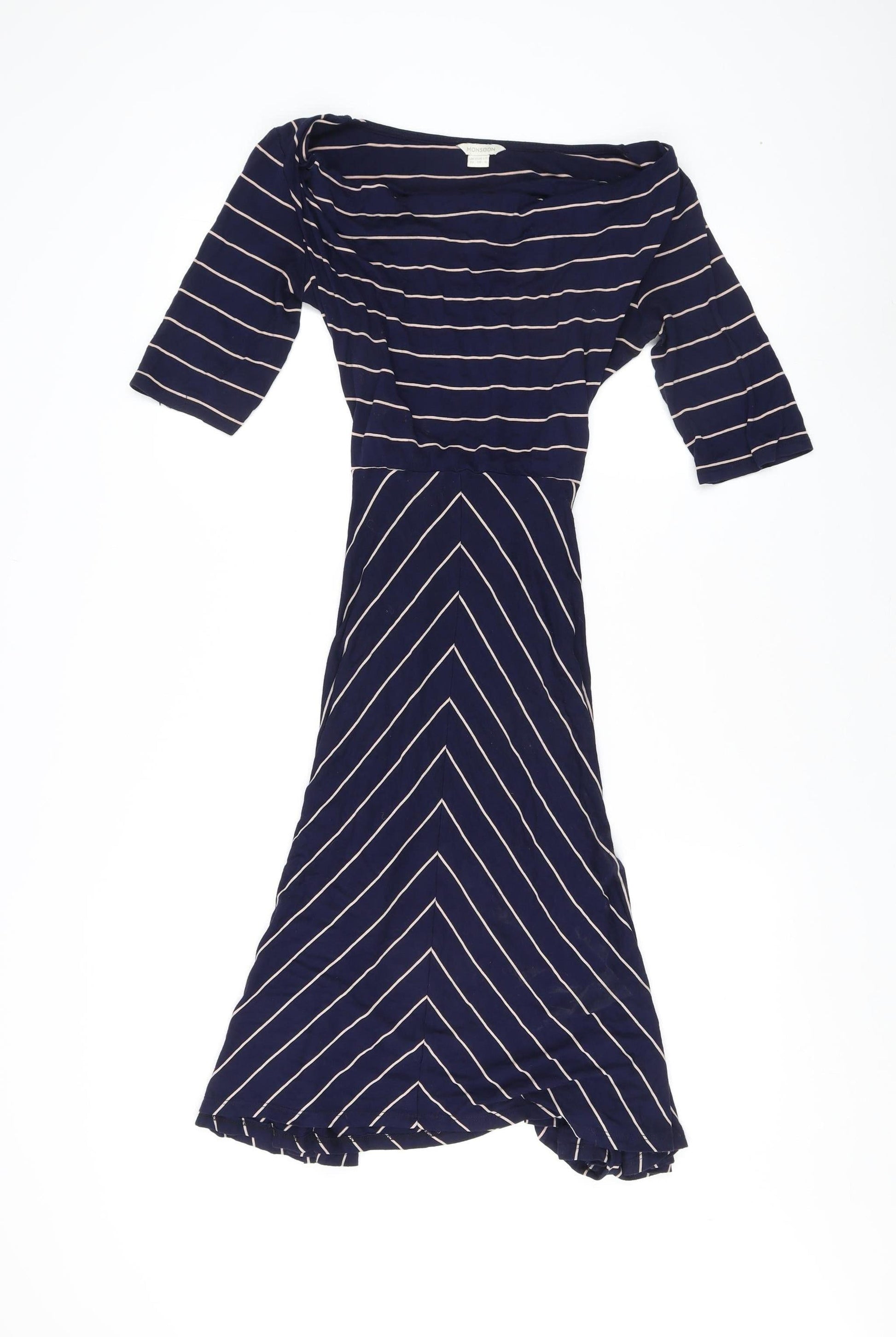 Monsoon Women's Blue Striped Jersey Dress Size 10