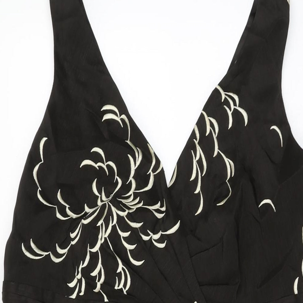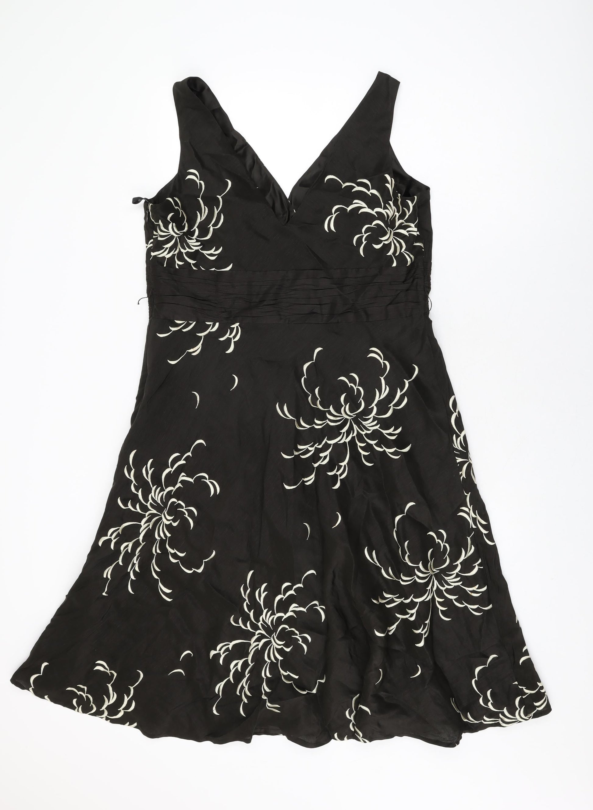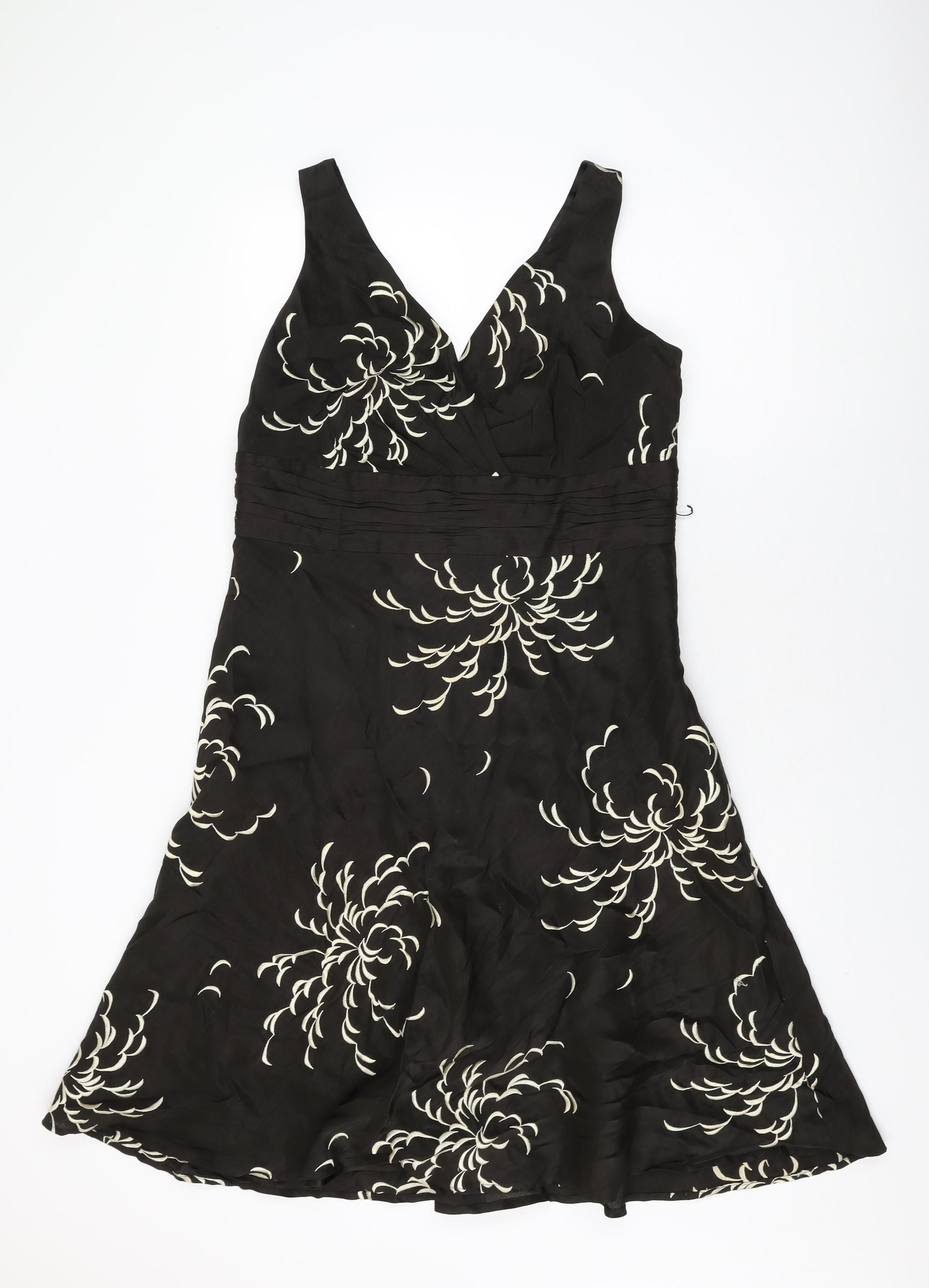 Monsoon Womens Brown Floral Linen A-Line Size 16 V-Neck Zip