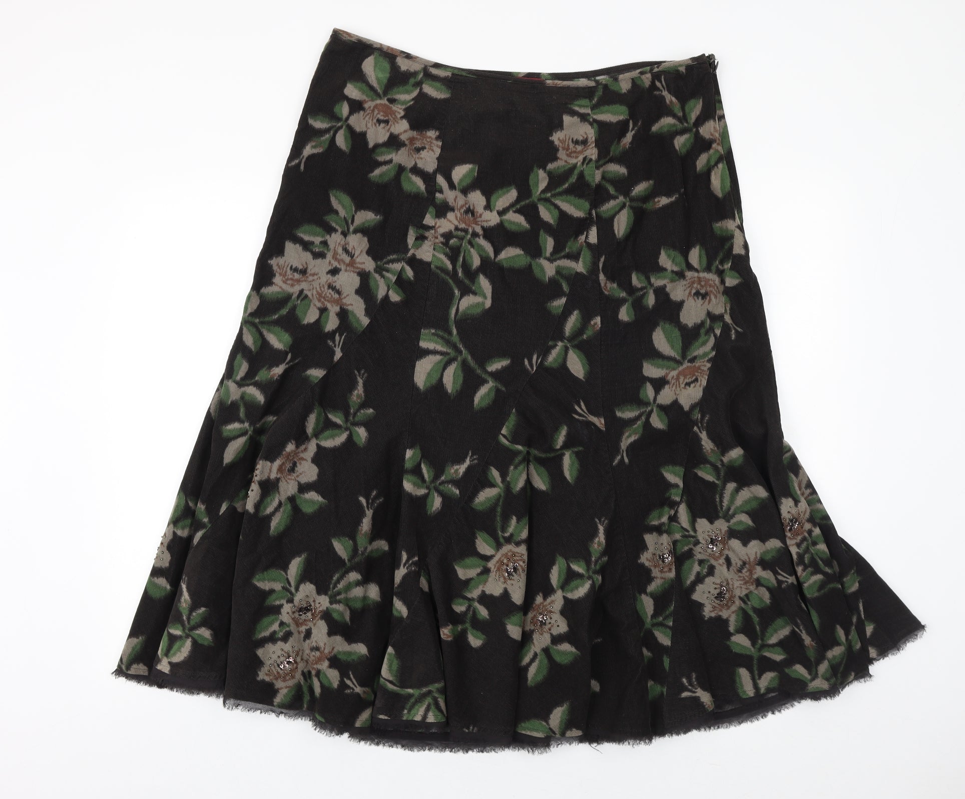 Monsoon Womens Brown Floral Polyester Swing Skirt Size 14 Zip