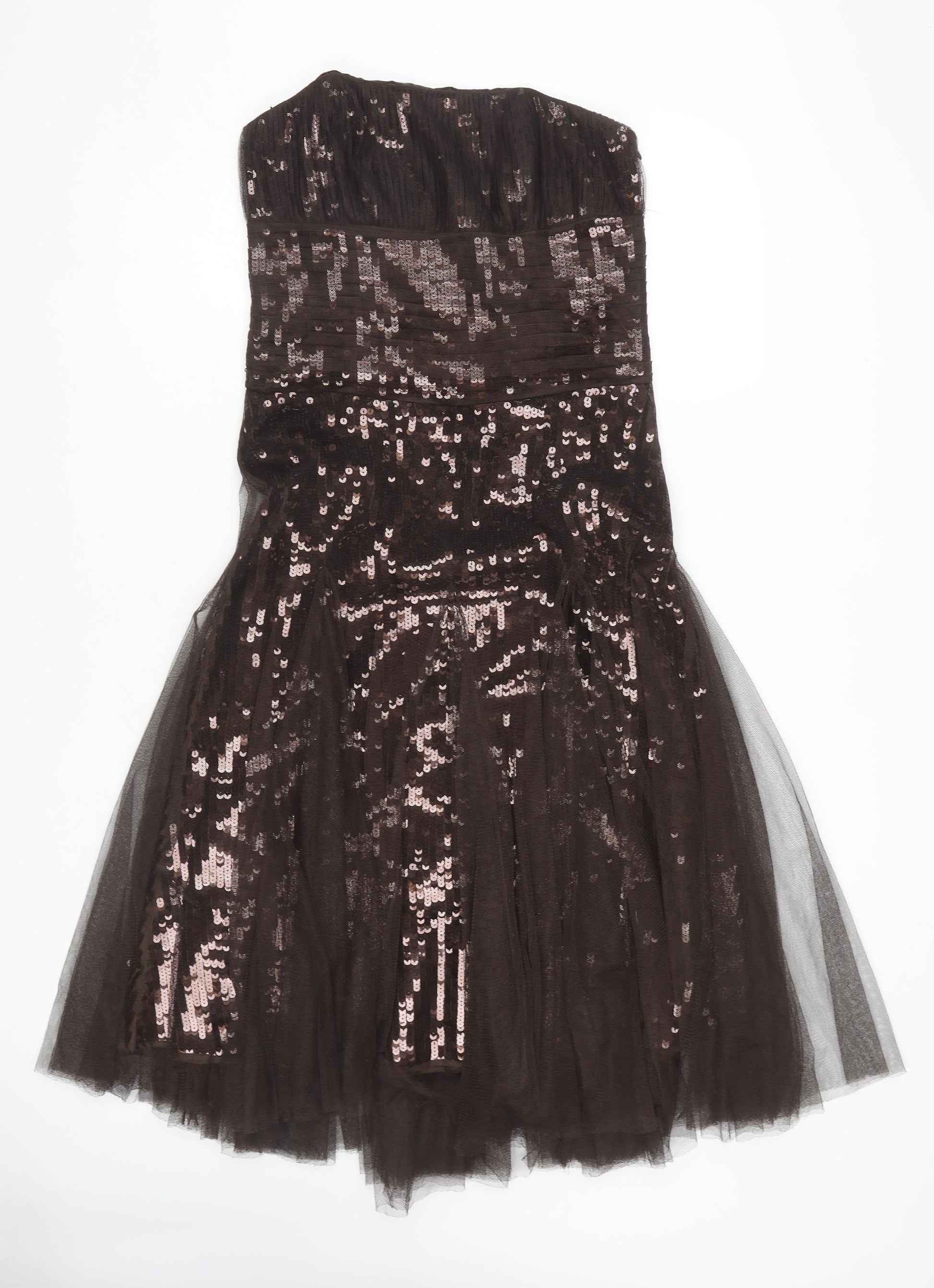 Monsoon Women's Brown Sequin Strapless Dress Size 12