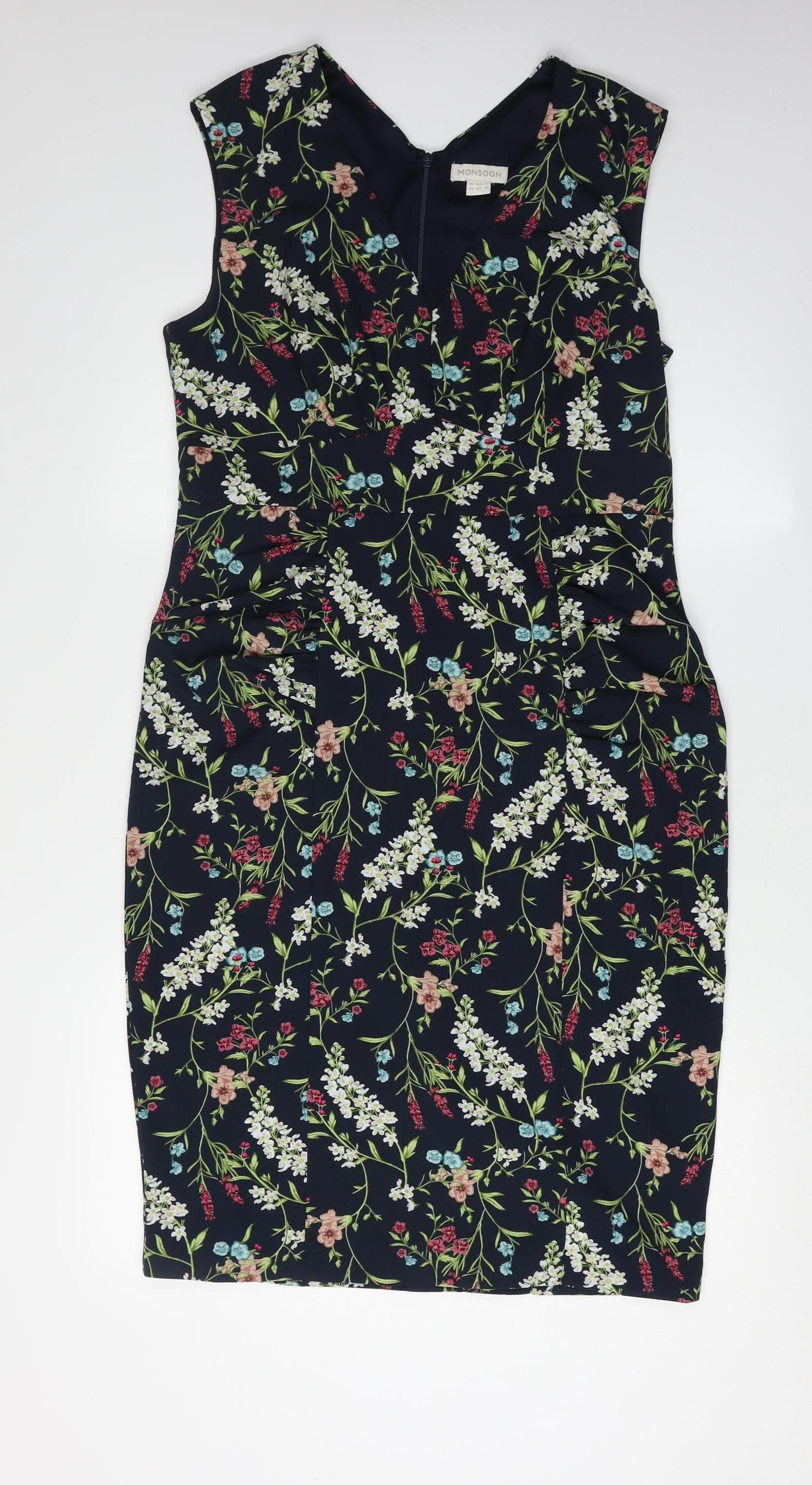 Monsoon Women's Floral Dress, Size 14, Multicoloured, Sleeveless