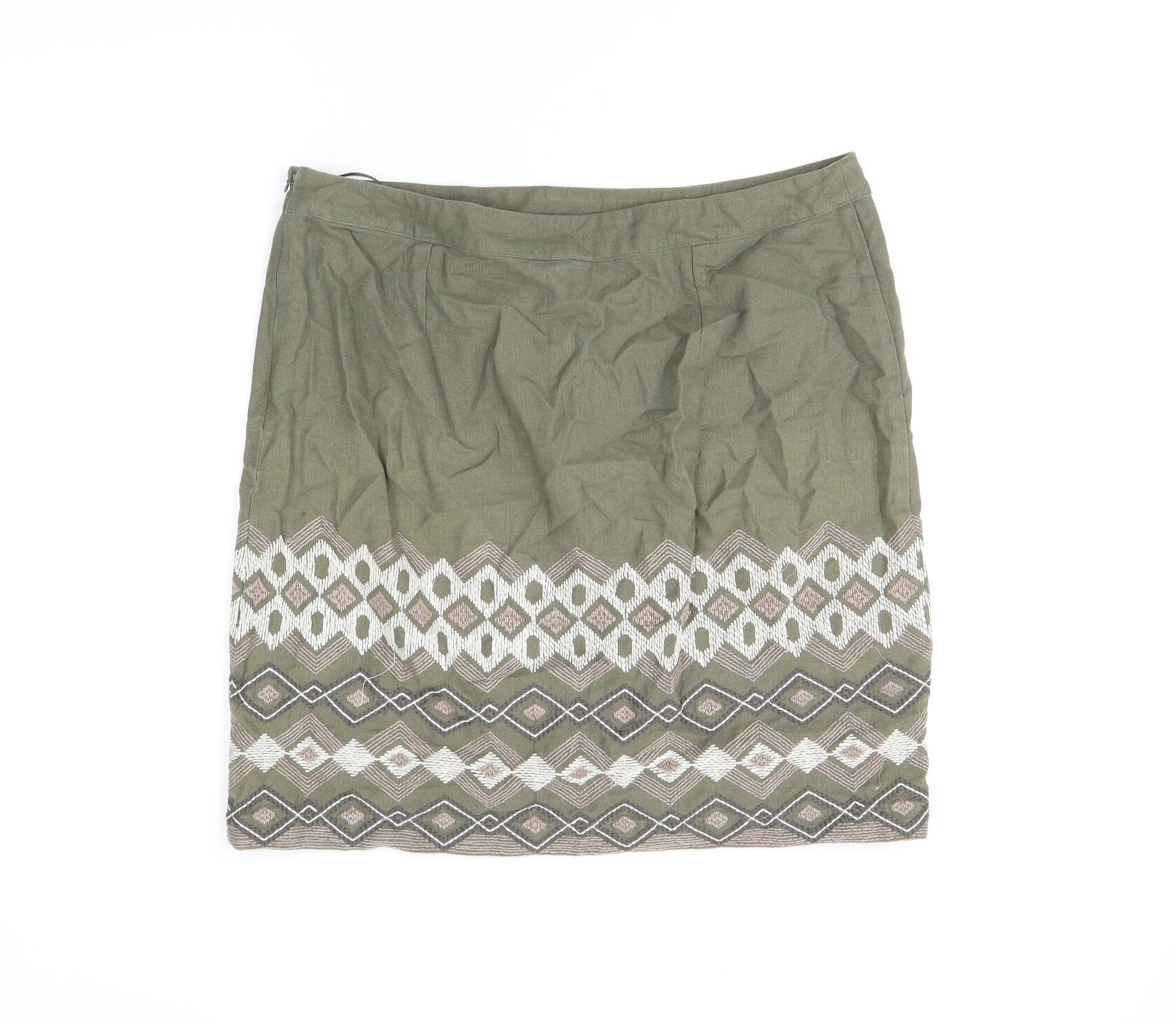 Monsoon Womens Green Geometric Cotton A-Line Skirt Size 14 Zip