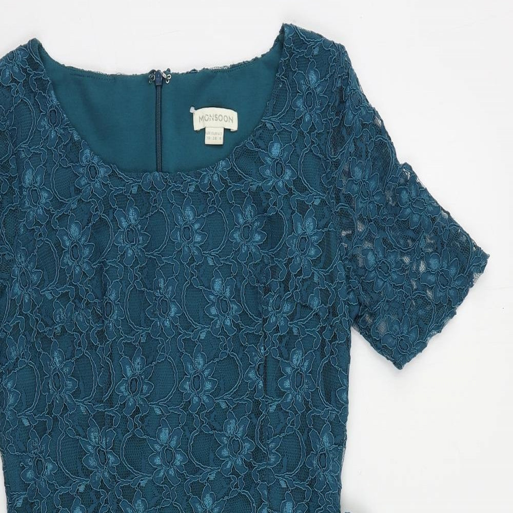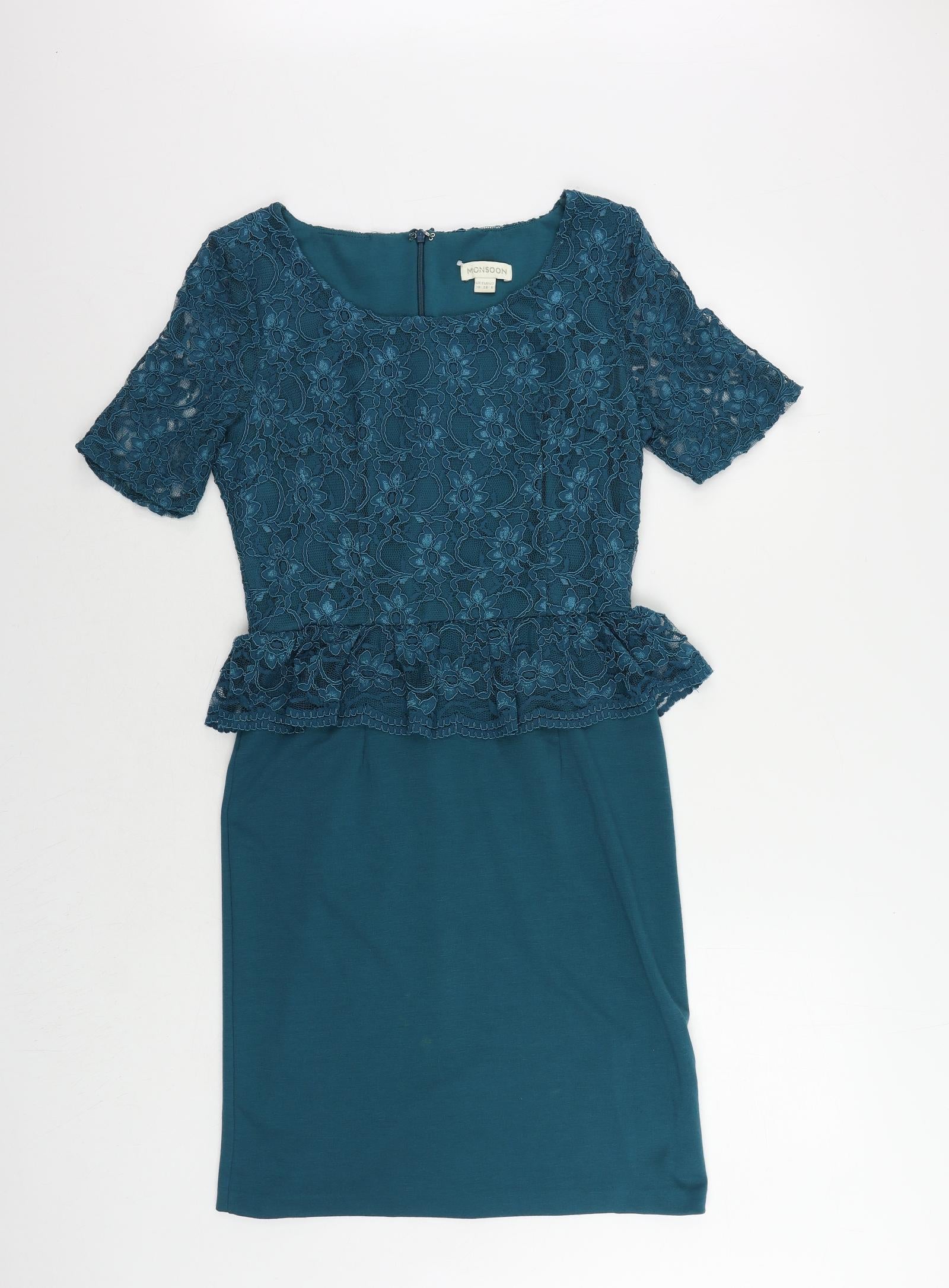 Monsoon Womens Green Polyester Pencil Dress Size 10 Boat Neck Zip - Peplum