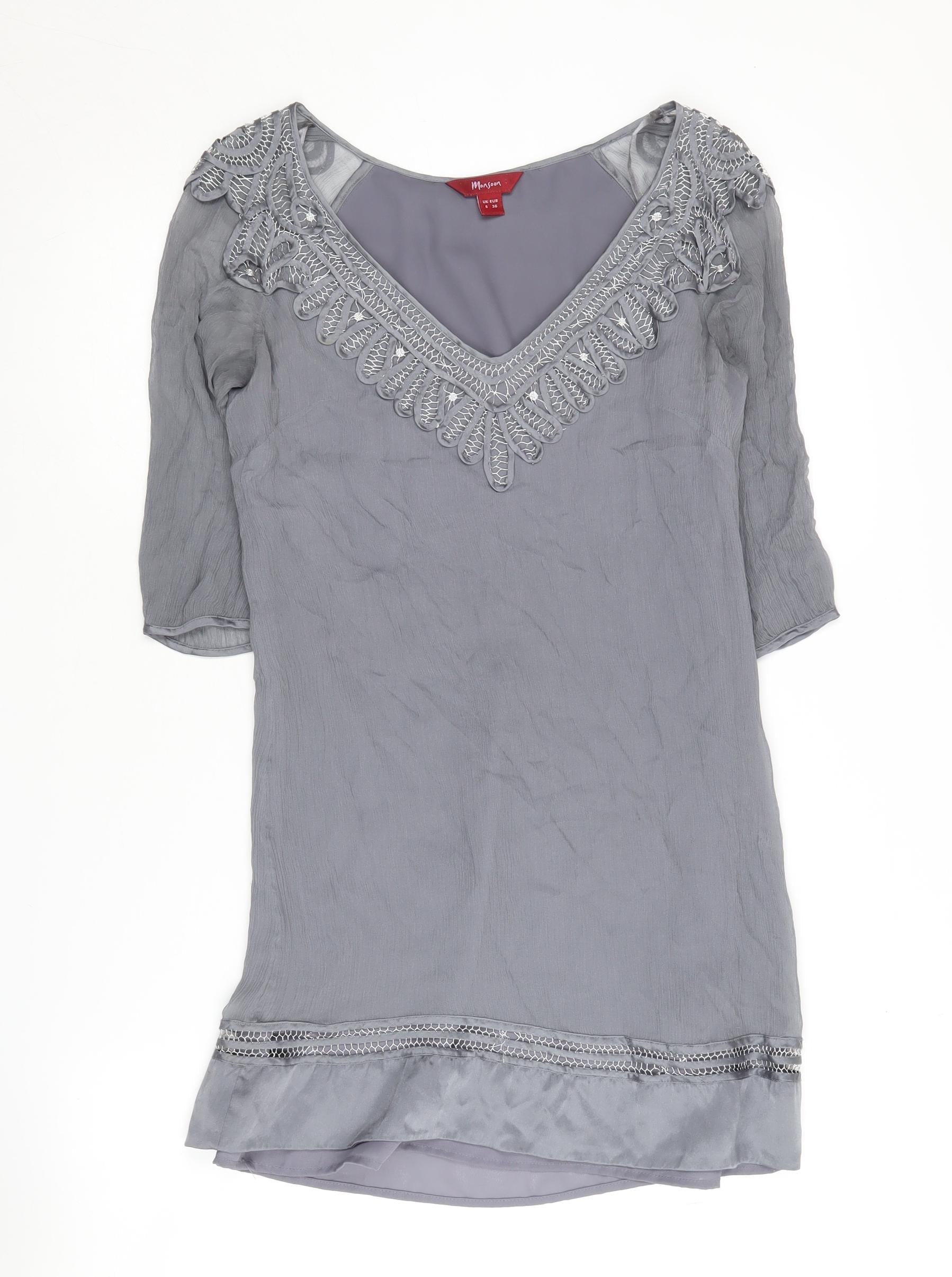 Monsoon Women's Grey 3/4 Sleeve V-Neck Dress