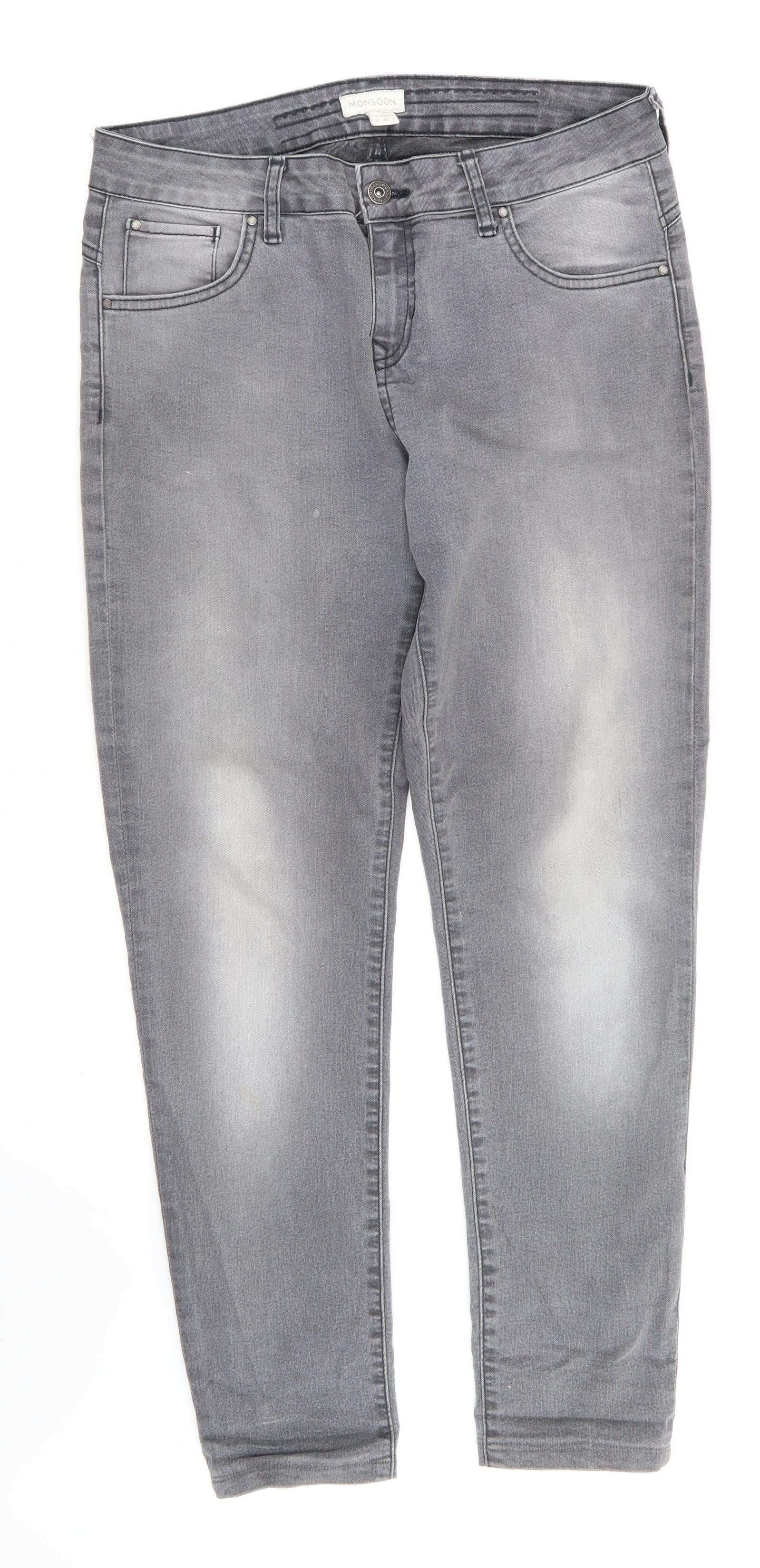 Monsoon Womens Grey Floral Cotton Straight Jeans Size 12 L27 in Regular - Embroidered back pockets