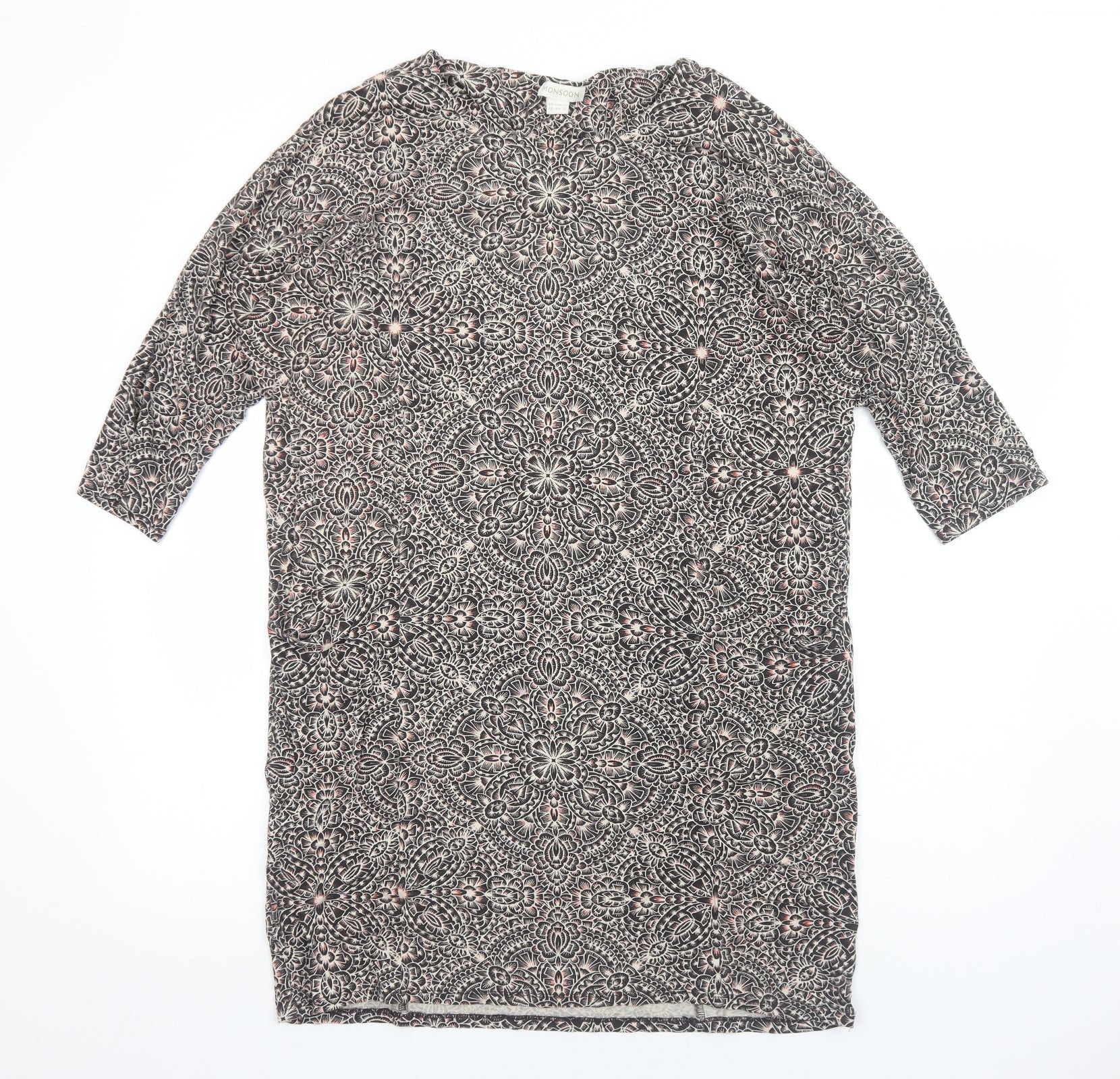Monsoon Womens Grey Geometric Viscose Shift Size 14 Boat Neck Pullover