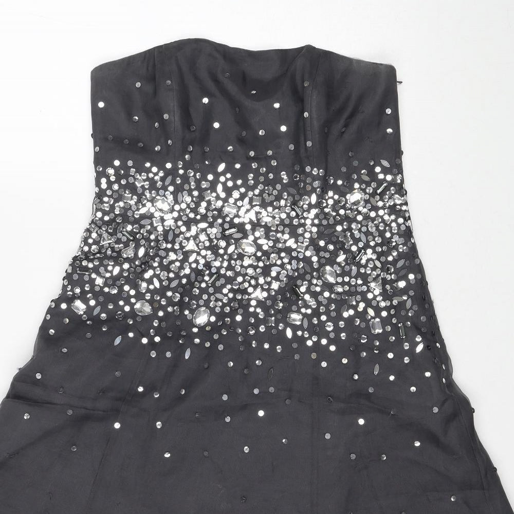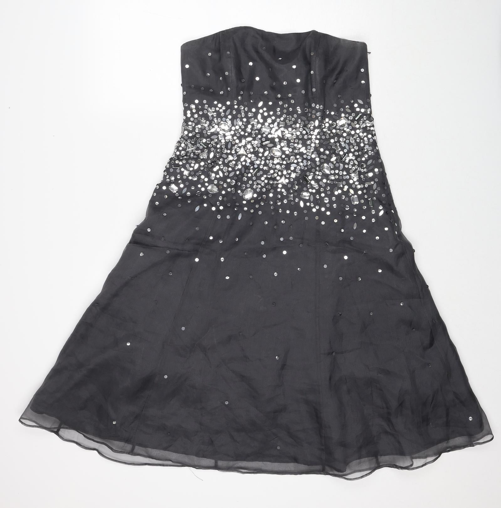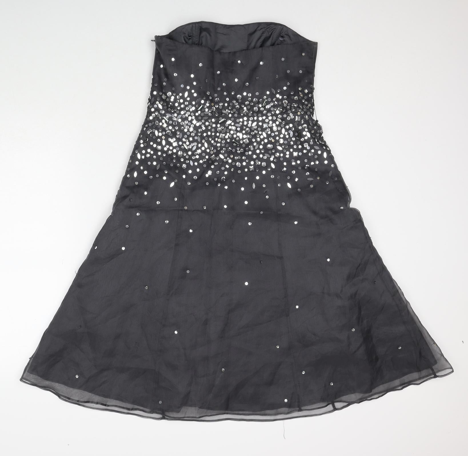 Monsoon Womens Grey Polyester A-Line Size 12 Off the Shoulder Zip