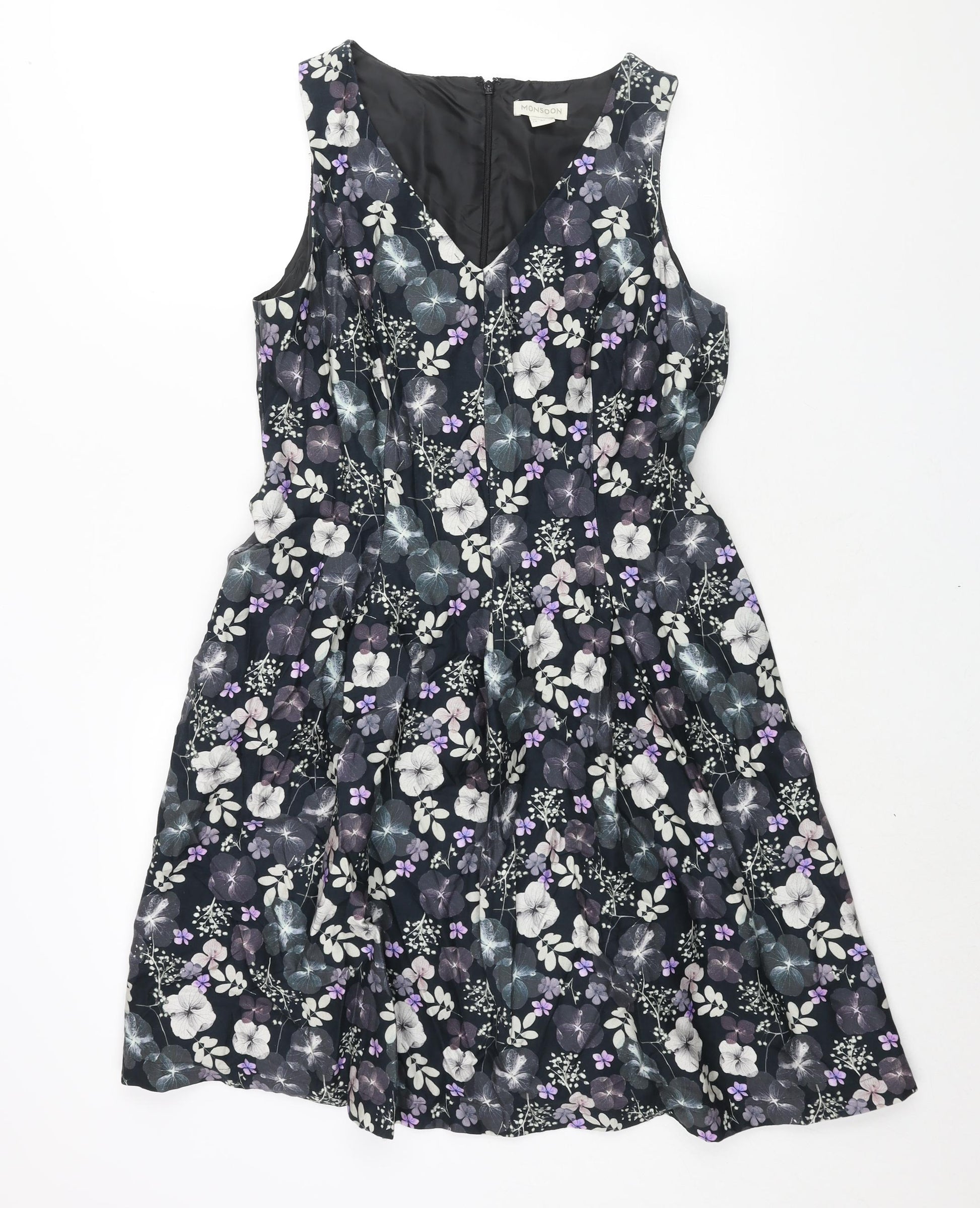 Monsoon Womens Multicoloured Floral Cotton Fit & Flare Size 14 V-Neck Zip