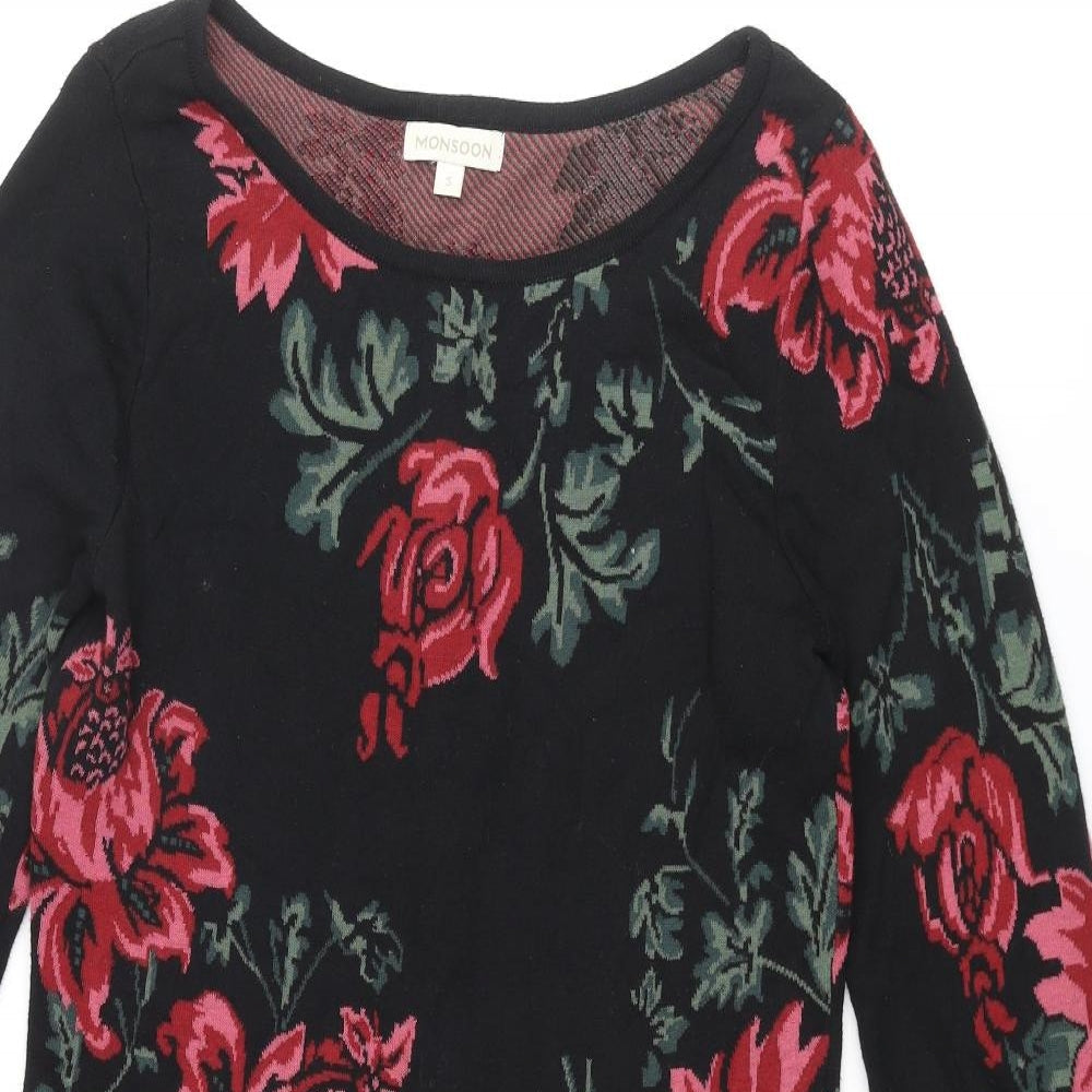 Monsoon Womens Multicoloured Floral Cotton Shirt Dress Size S Boat Neck Pullover