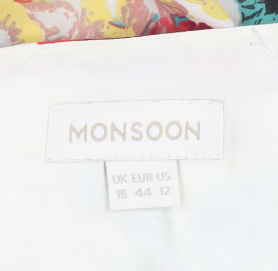 Monsoon Womens Multicoloured Floral Midi A-Line Dress Size 16