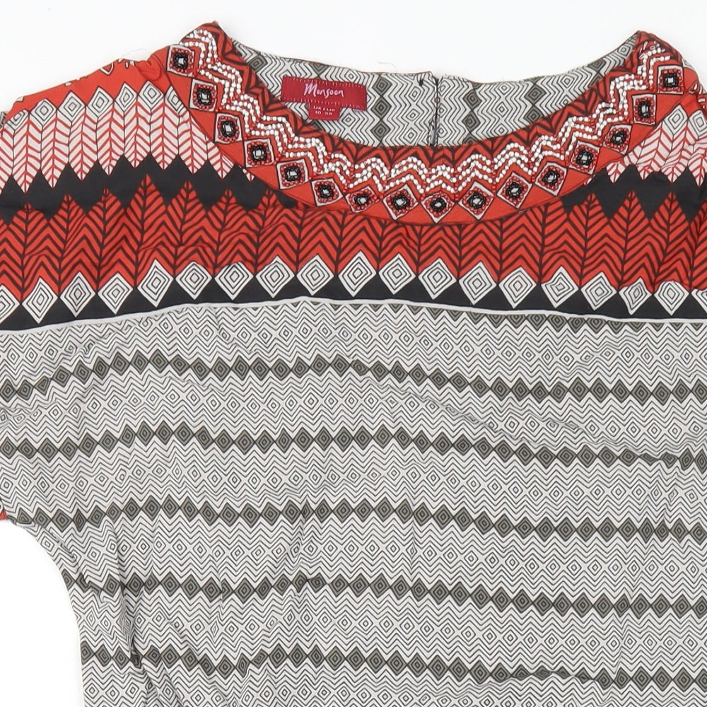 Monsoon Womens Multicoloured Geometric Viscose A-Line Size 10 Round Neck Zip - Beaded Neckline