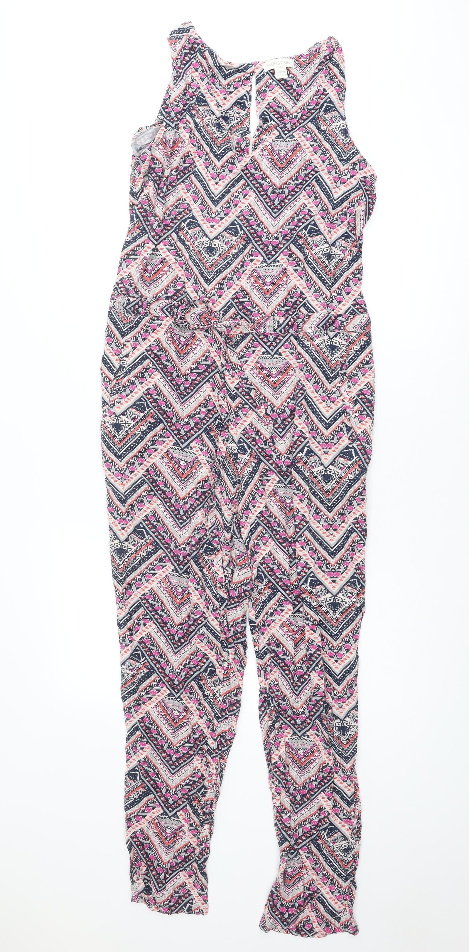 Monsoon Womens Multicoloured Geometric Viscose Jumpsuit One-Piece Size 12 L28 in Button