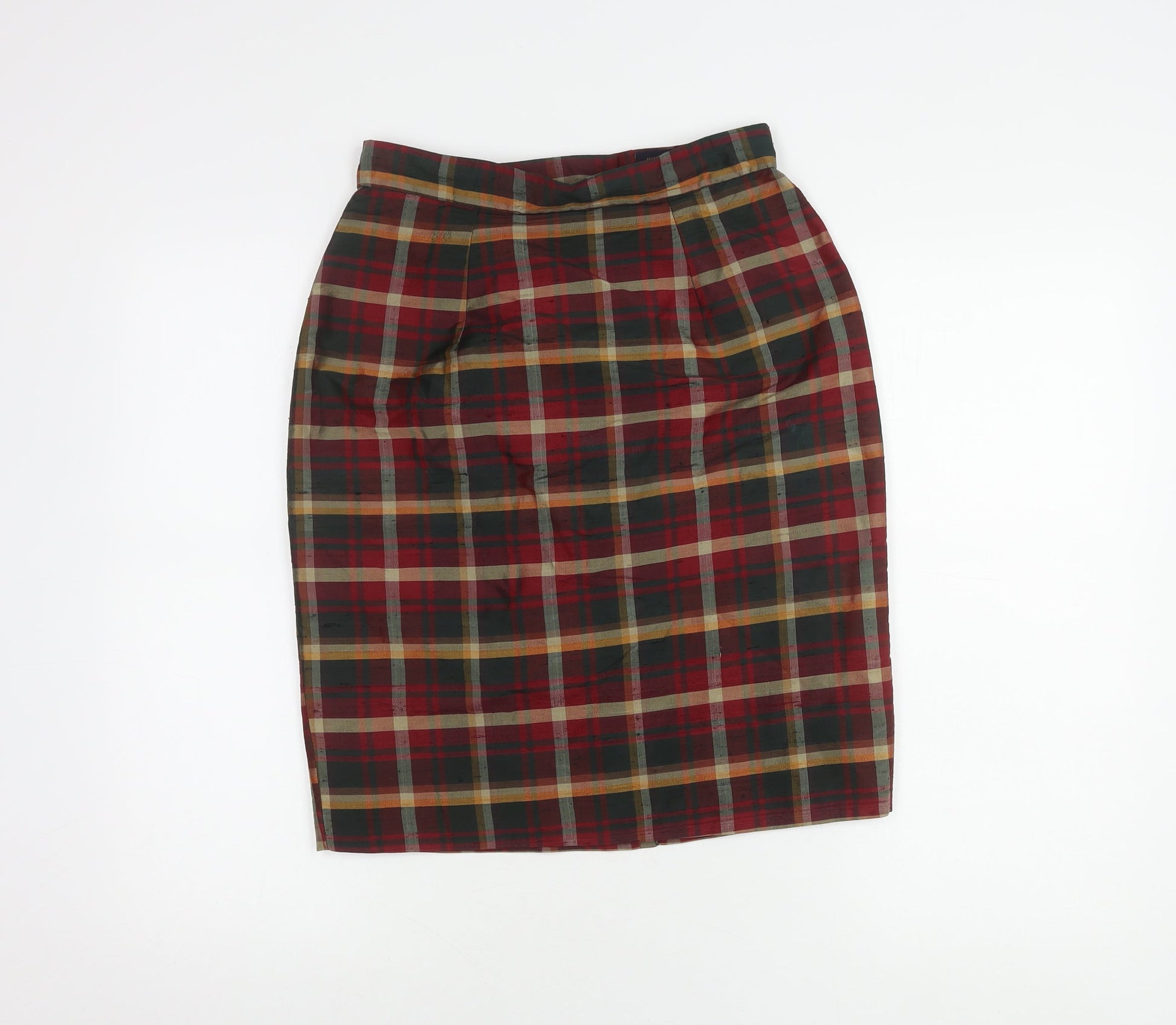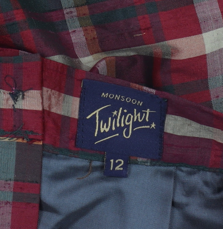 Monsoon Women's Multicoloured Plaid Silk Pencil Skirt