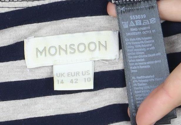 Monsoon Women's Multicoloured Striped Wrap Dress Size 14