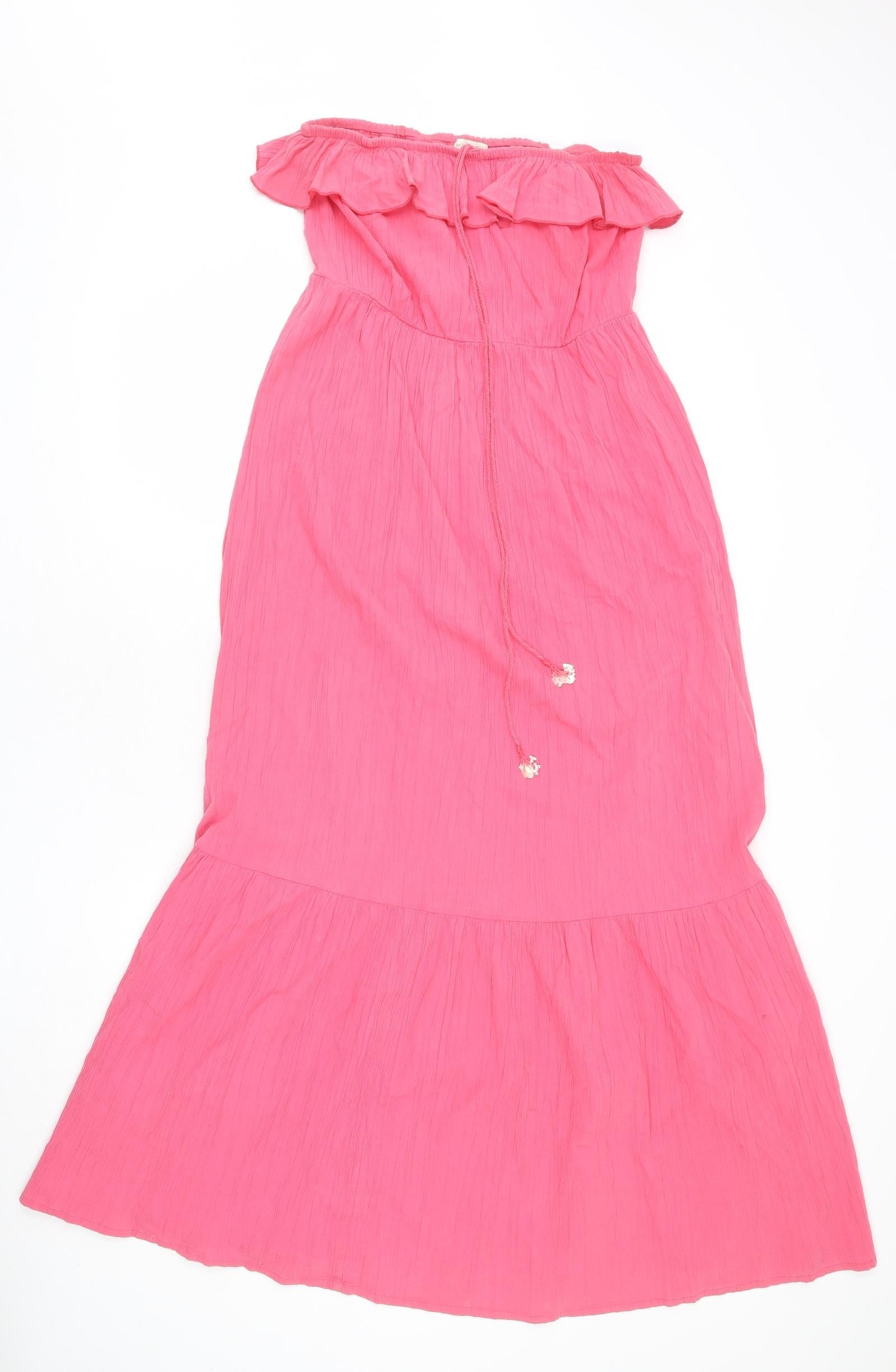 Monsoon Womens Pink 100% Cotton Maxi Size M Off the Shoulder Pullover - Ruffle Detail, Tassels