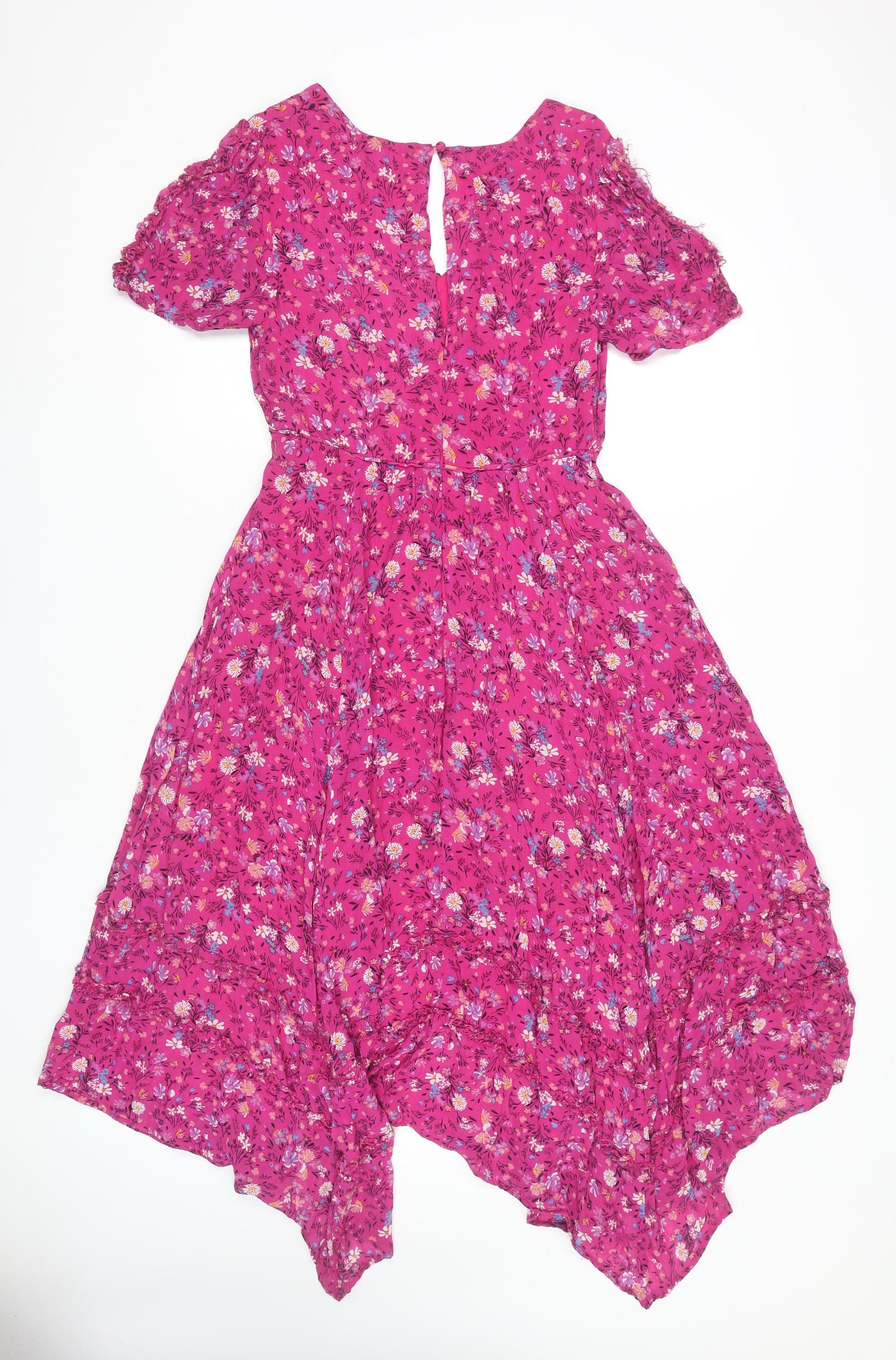 Monsoon Women's Pink Floral A-Line Viscose Dress Size 10