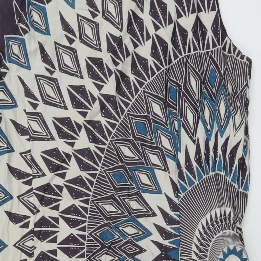 Monsoon Womens Purple Geometric Cotton A-Line Size 14 Round Neck Button