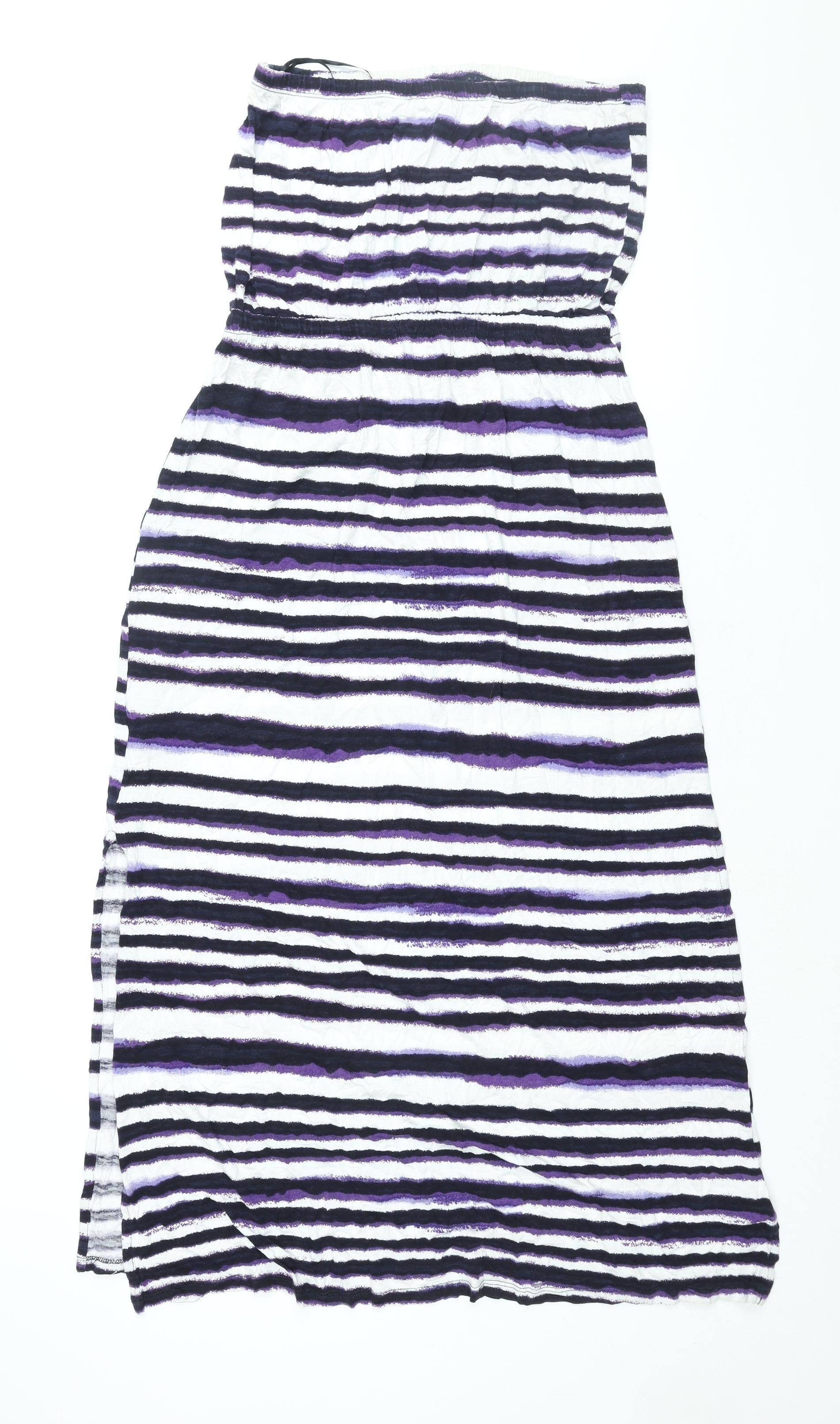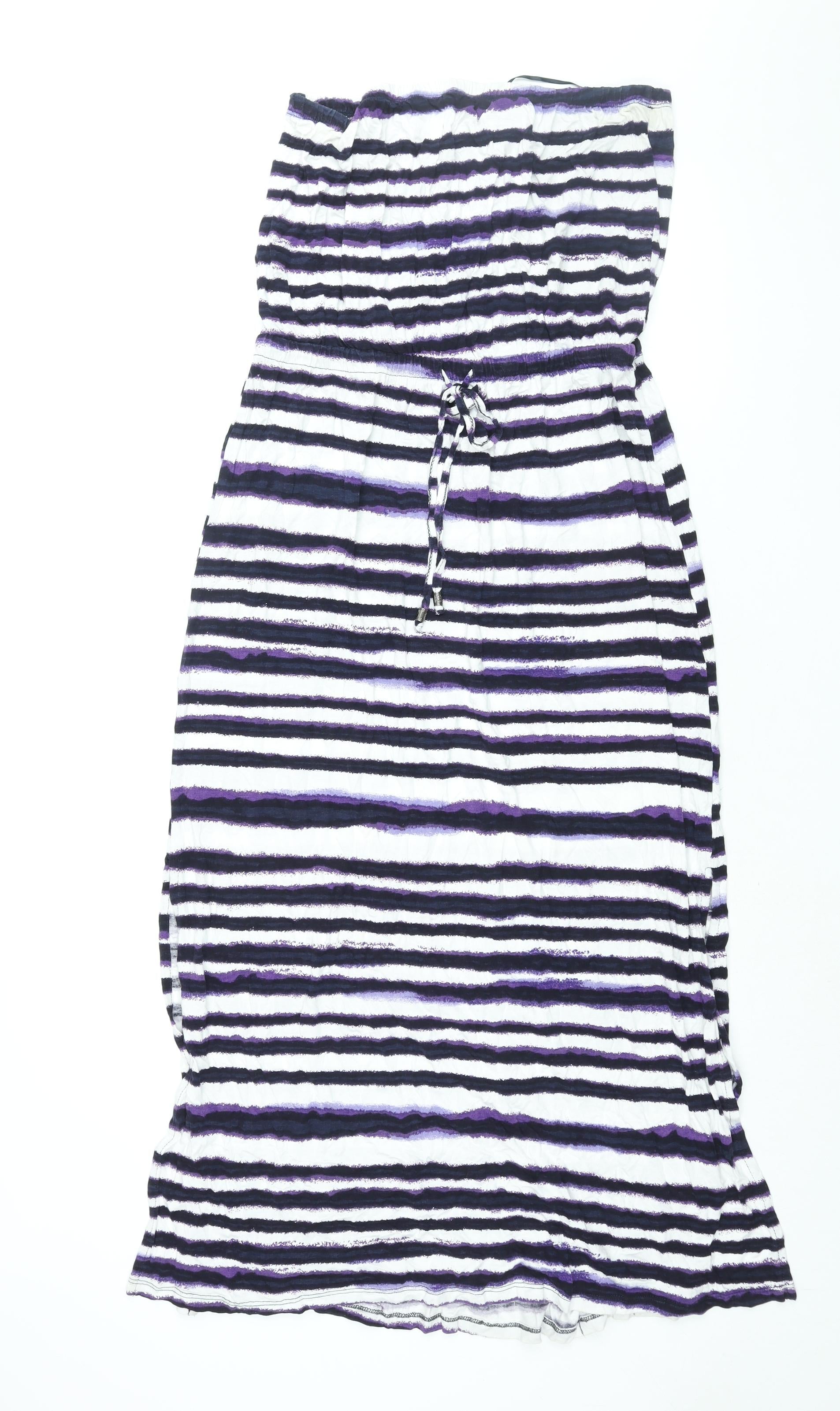 Monsoon Womens Purple Striped Viscose Maxi Size M Square Neck Pullover - Drawstring Waist