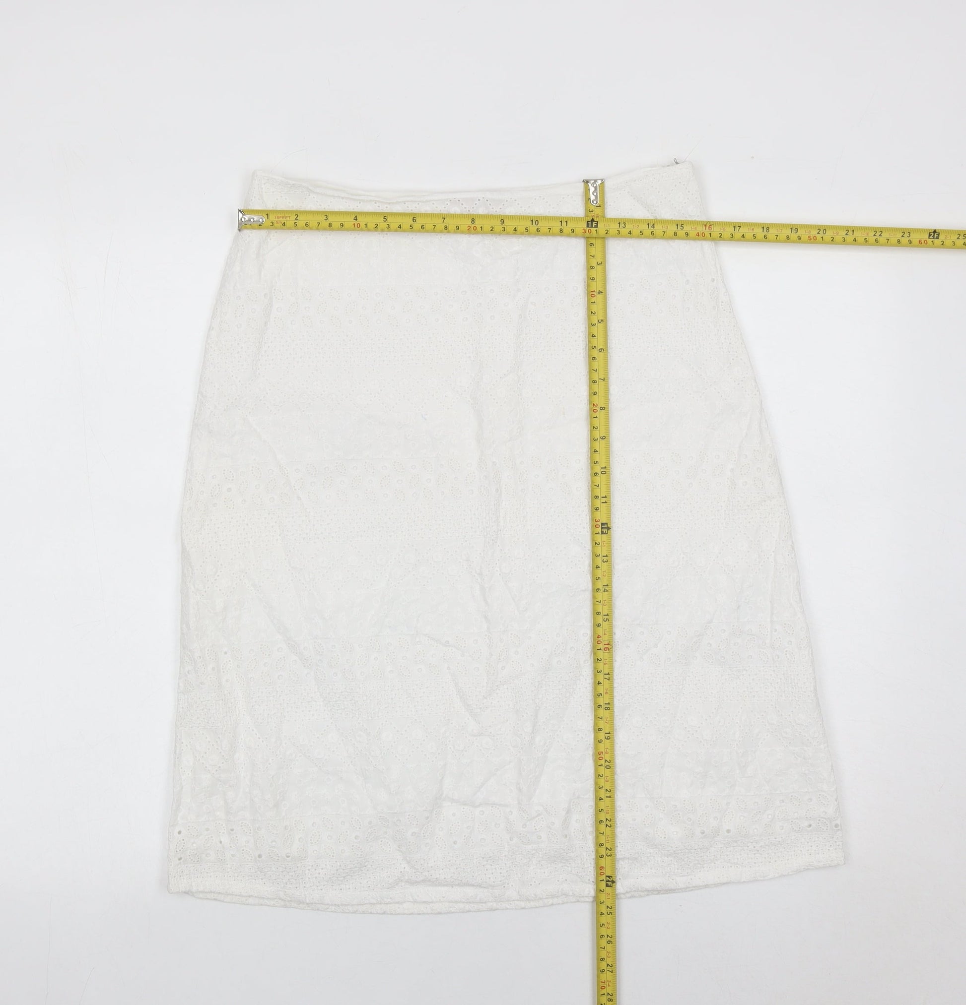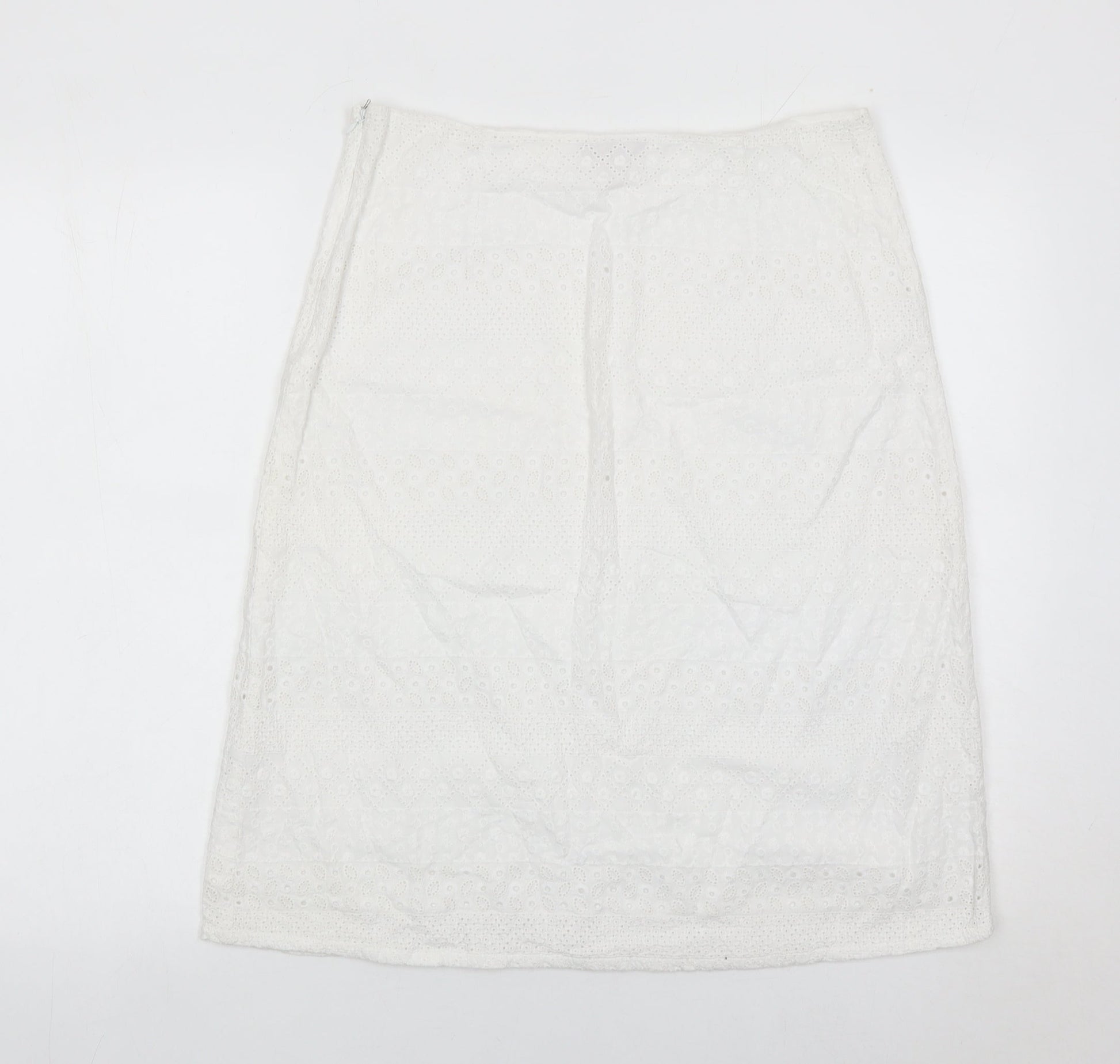 Monsoon Womens White Cotton Pencil Skirt Size 12 Knee Length