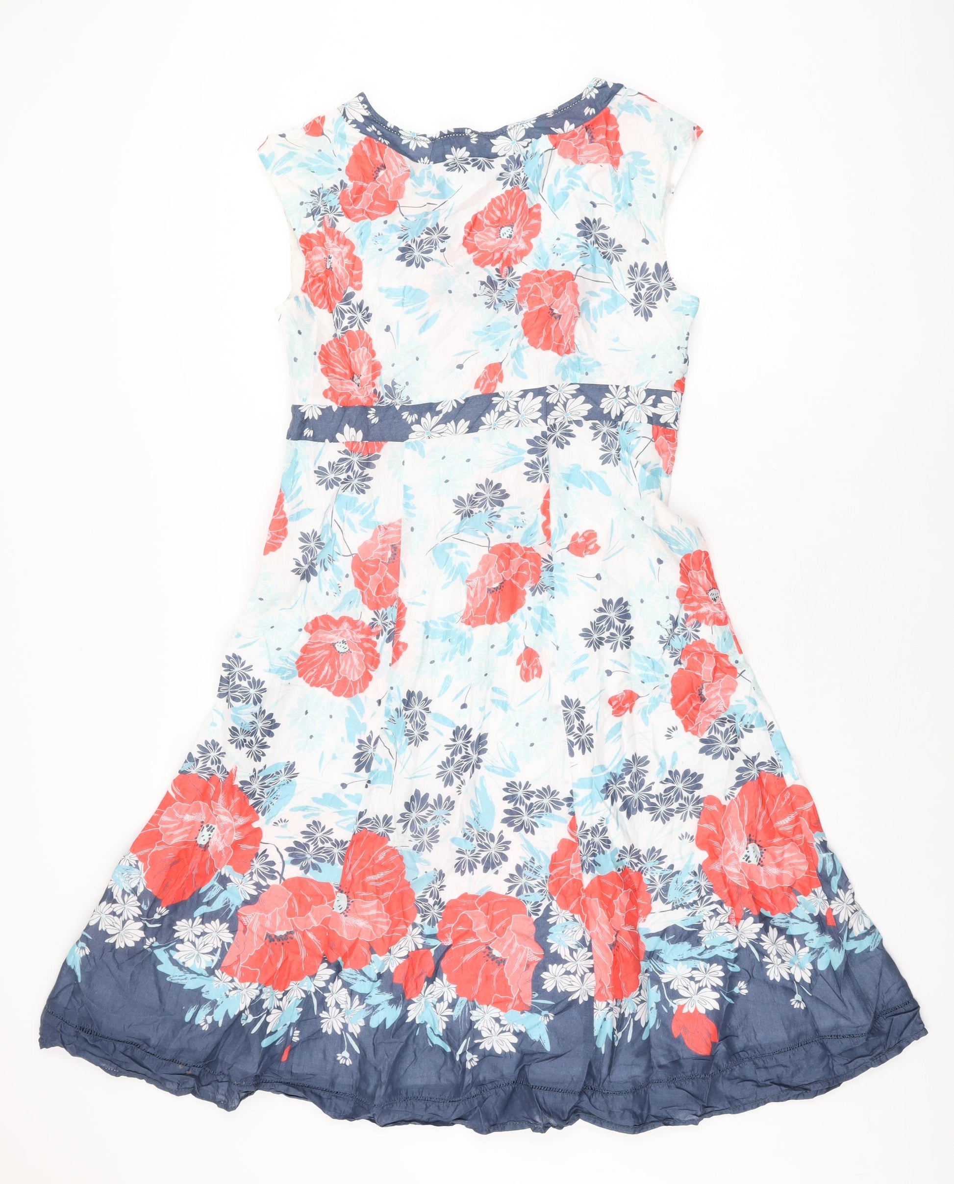 Monsoon Womens White Floral Polyester A-Line Size 14 V-Neck Zip
