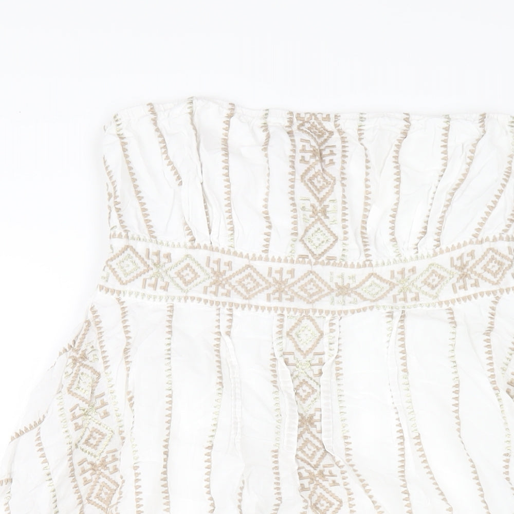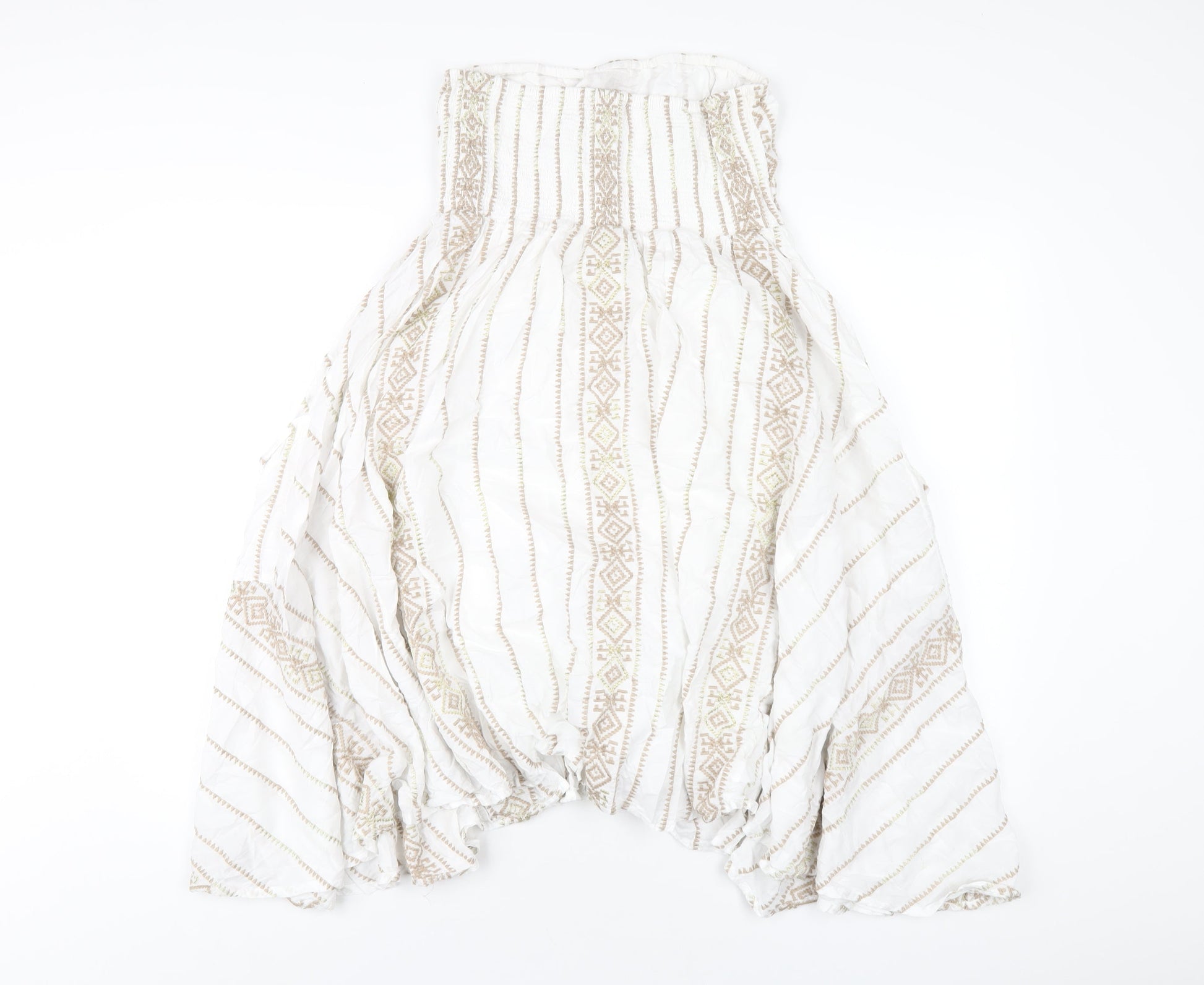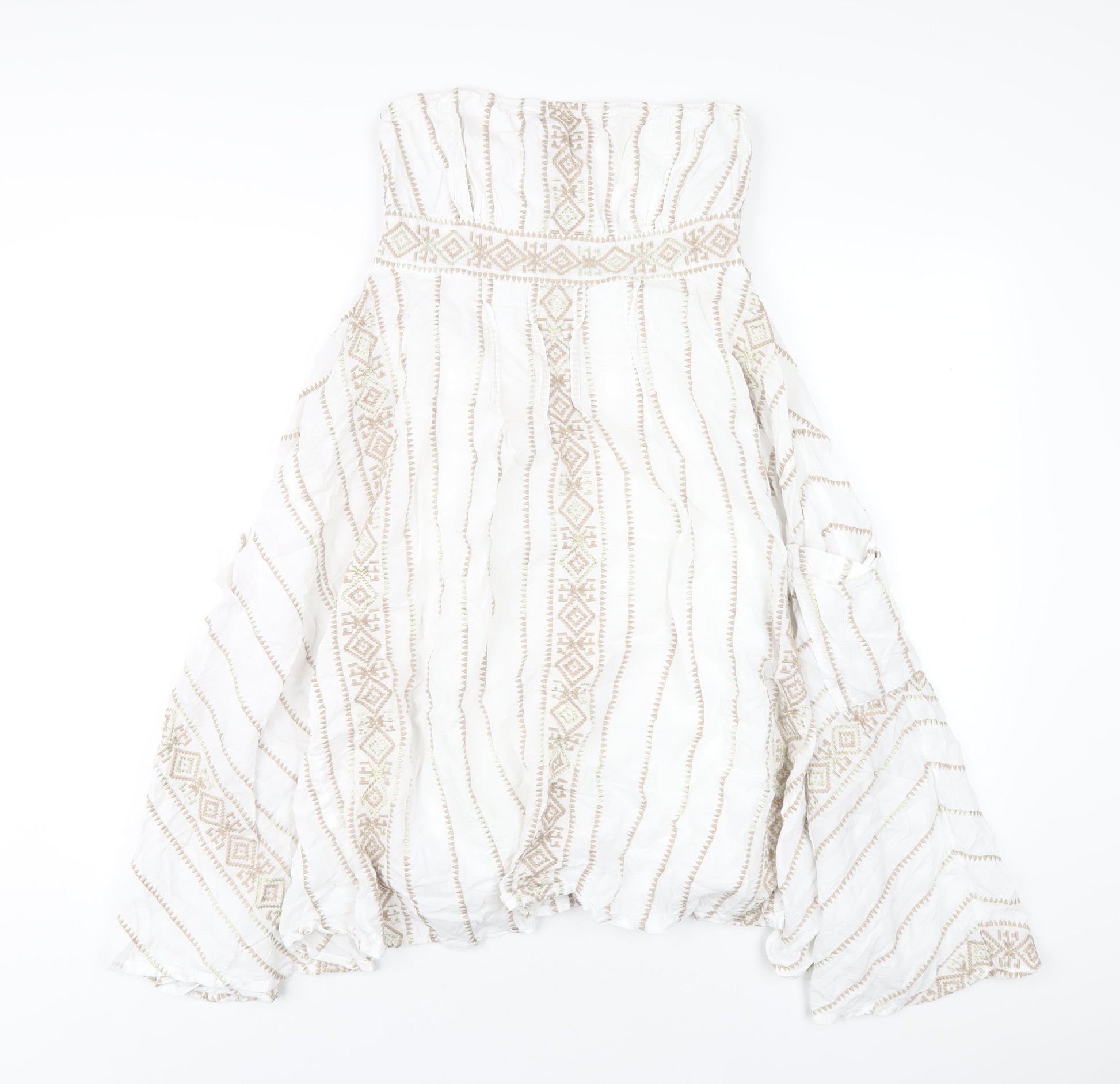 Monsoon Womens White Geometric Cotton A-Line Size 10 Square Neck Pullover