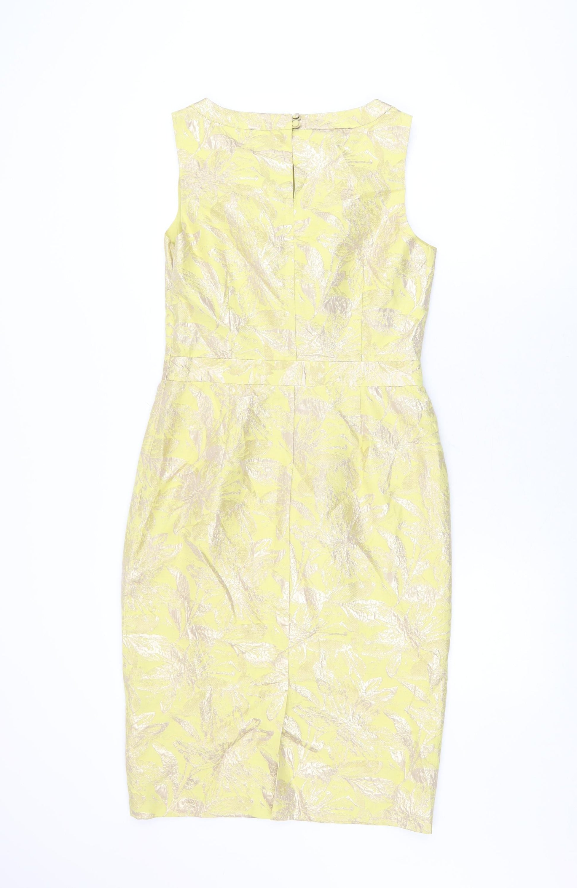 Monsoon Womens Yellow Floral Cotton Bodycon Size 10 Round Neck Zip
